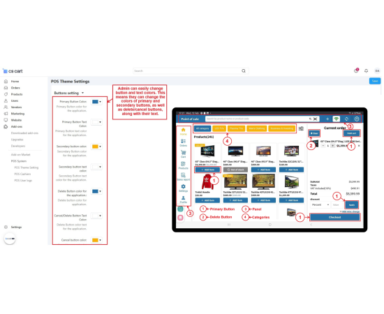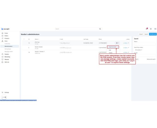 CS-Cart POS is a user-friendly system for smooth management of online and offline sales in Multivendor stores. It enables store owners and vendors to manage in-store and online sales from a single, unified dashboard. The system supports multiple cashiers, real-time sync of categories, orders, and products, and robust reporting via X-Reports and Z-Reports. Features include a hold cart, discount, tipping options, split payments, and offline mode, ensuring smooth operations even without internet.
