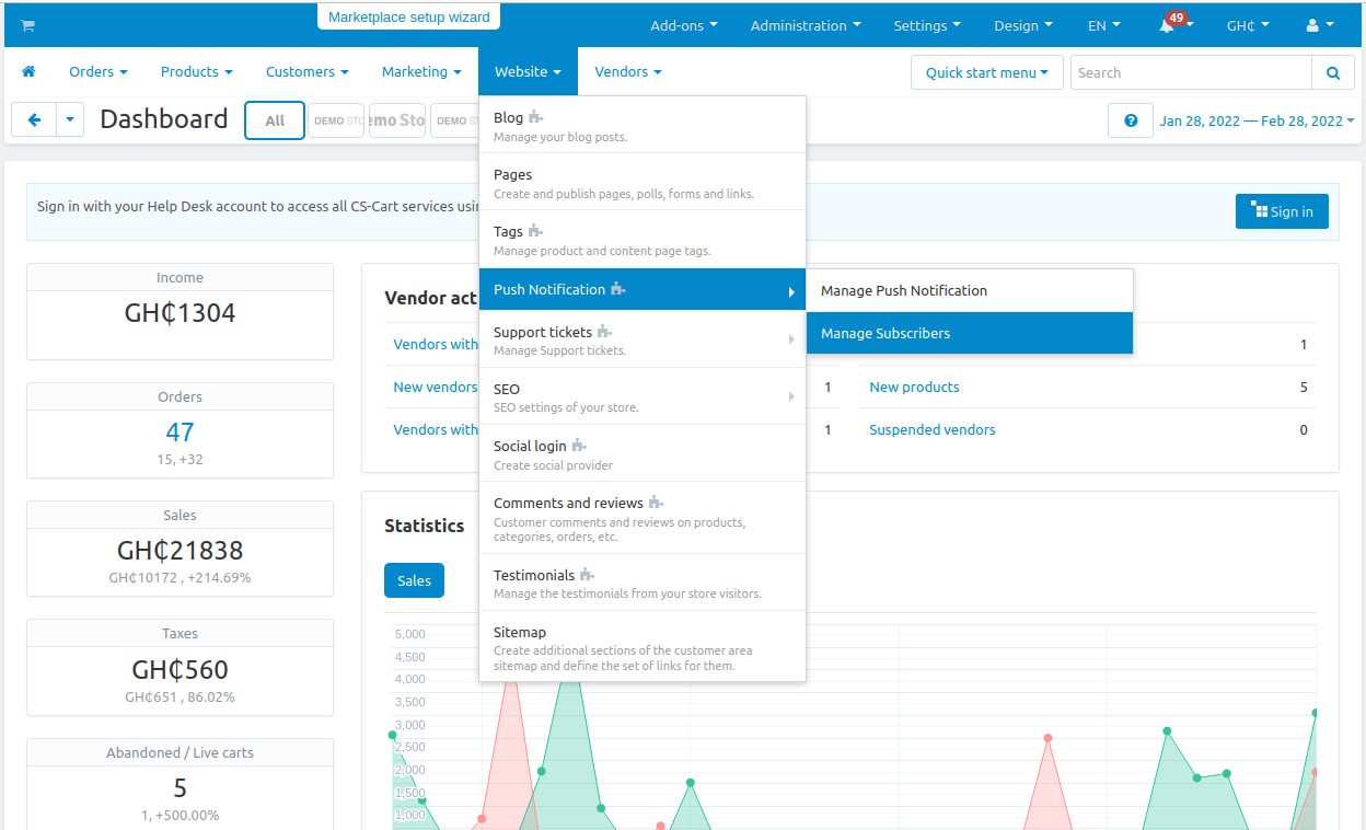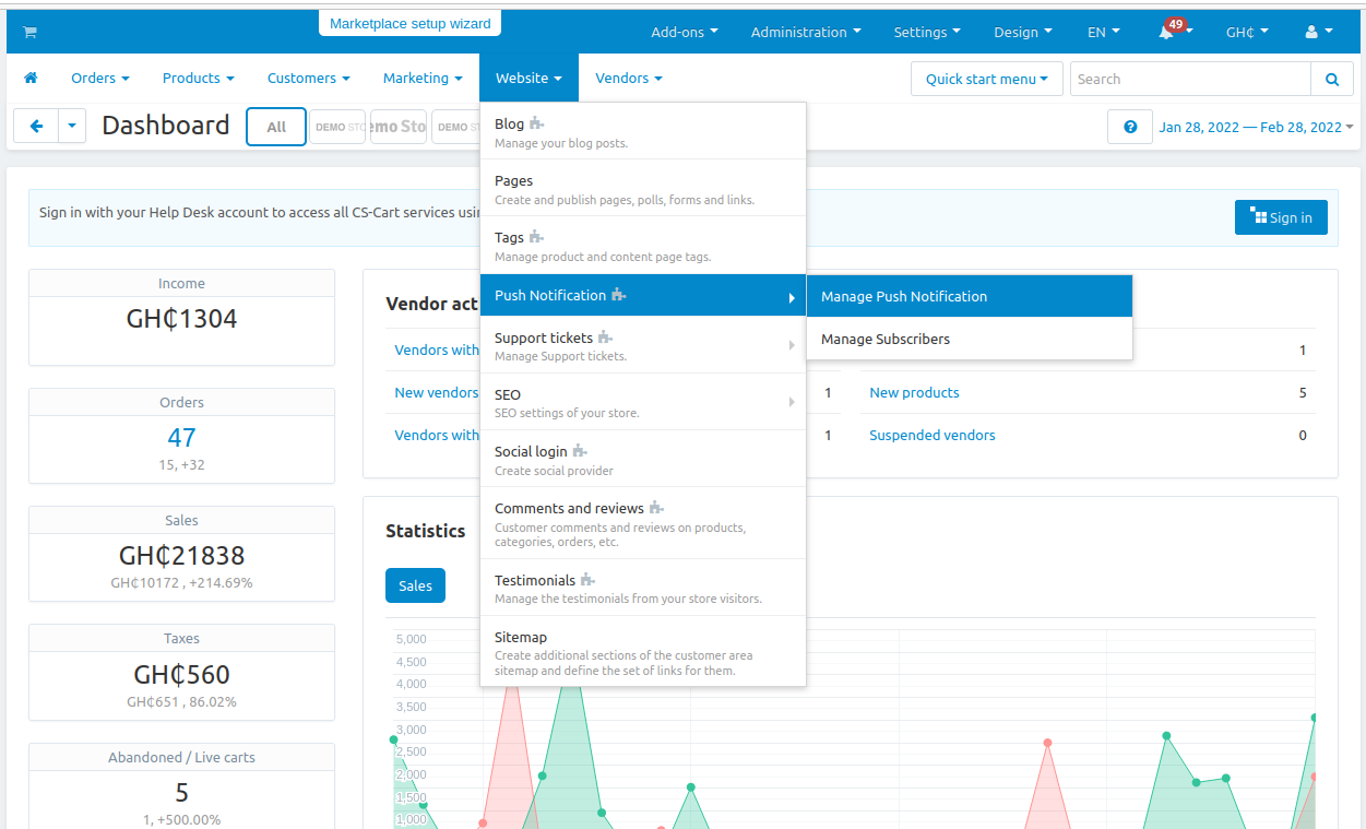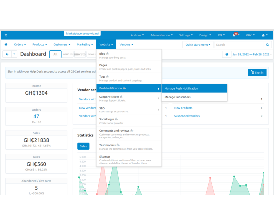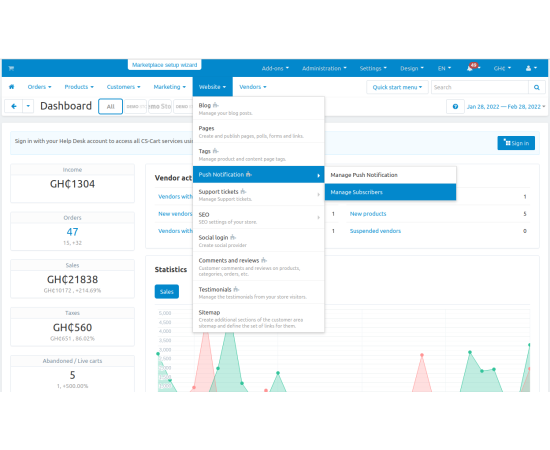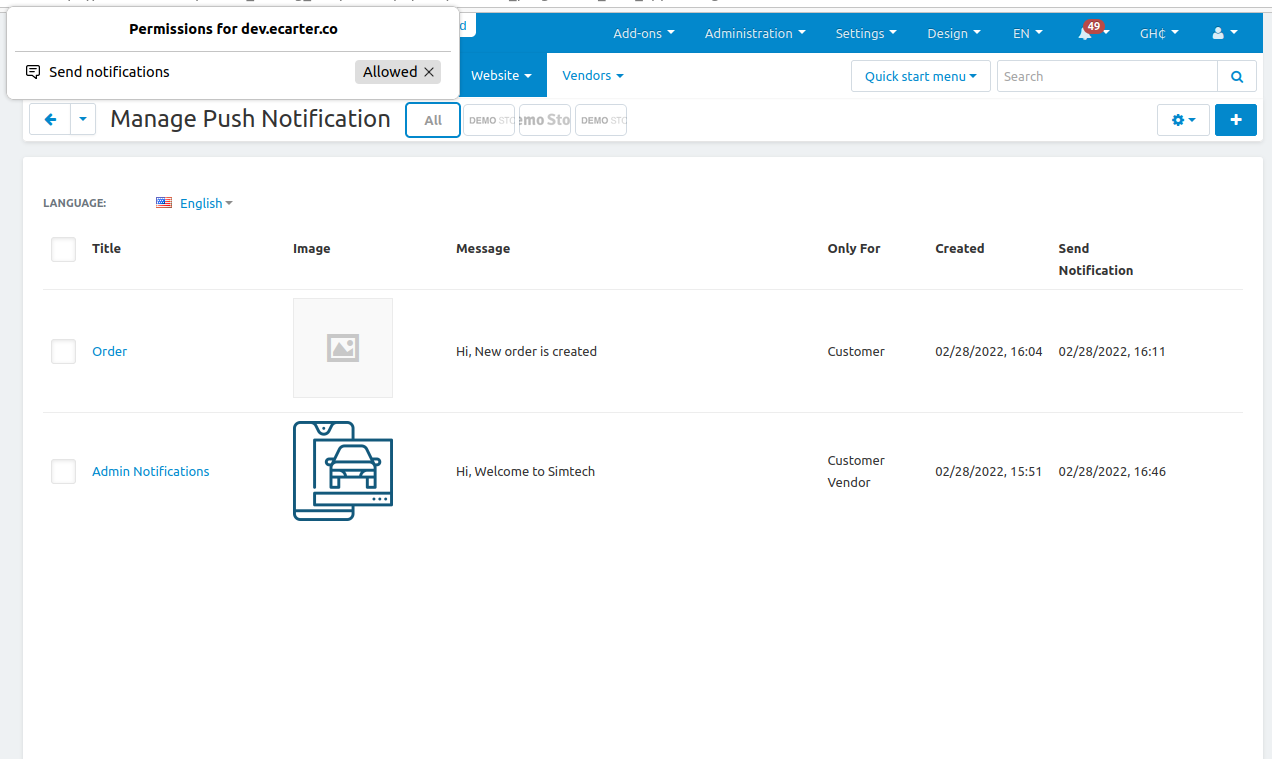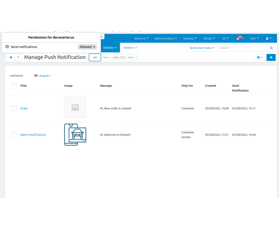 The CS-Cart Push Notification Addon allows store admins to send instant notifications directly to subscribers’ devices. Users receive pop-up messages even when they are not active on the website, keeping them informed about offers, updates, and new products in real-time.