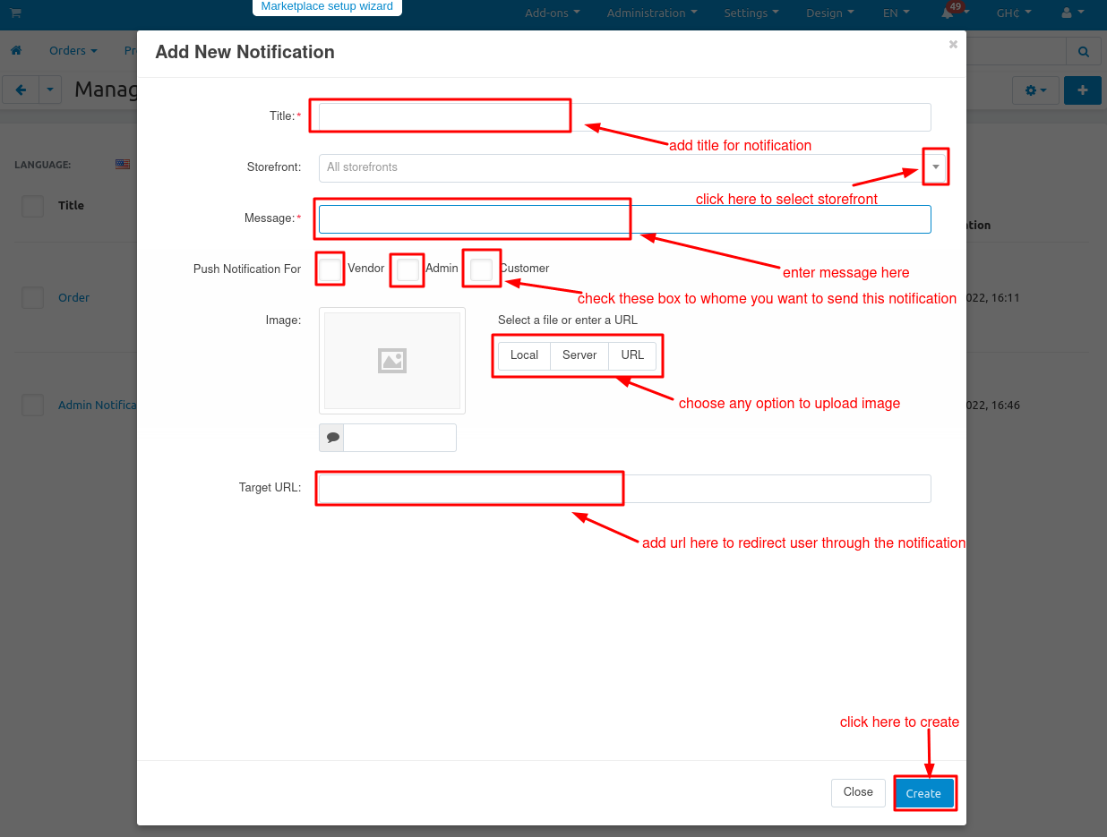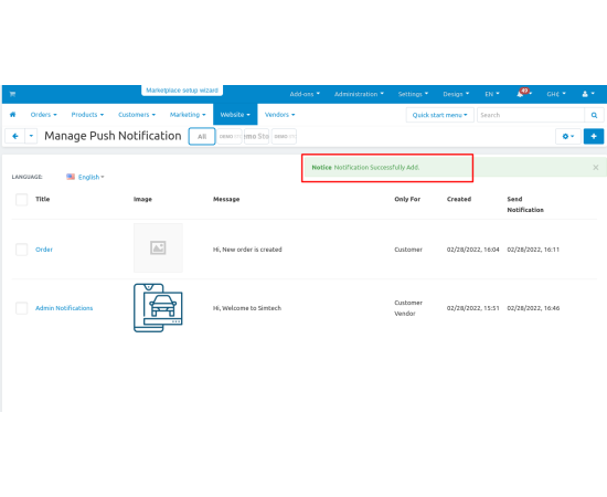 - Features to add icon and target URL for notifications.