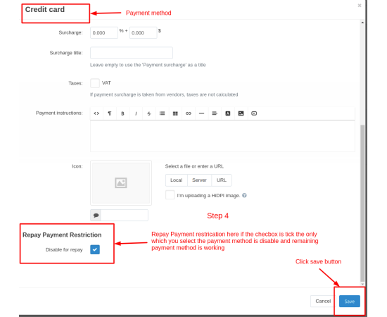 - Payment Method-Based Restriction: Limit specific payment methods so only selected methods can be used for repayment.