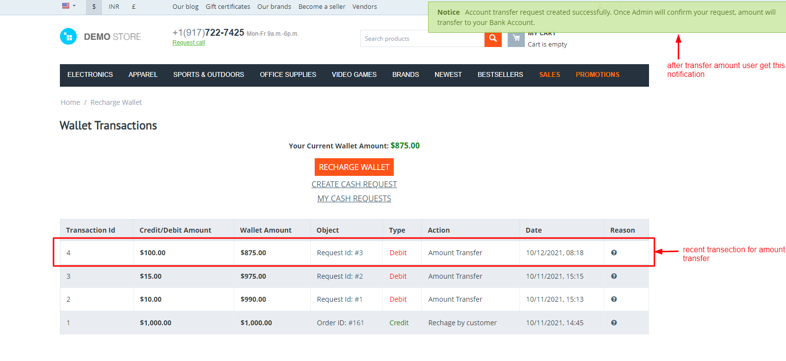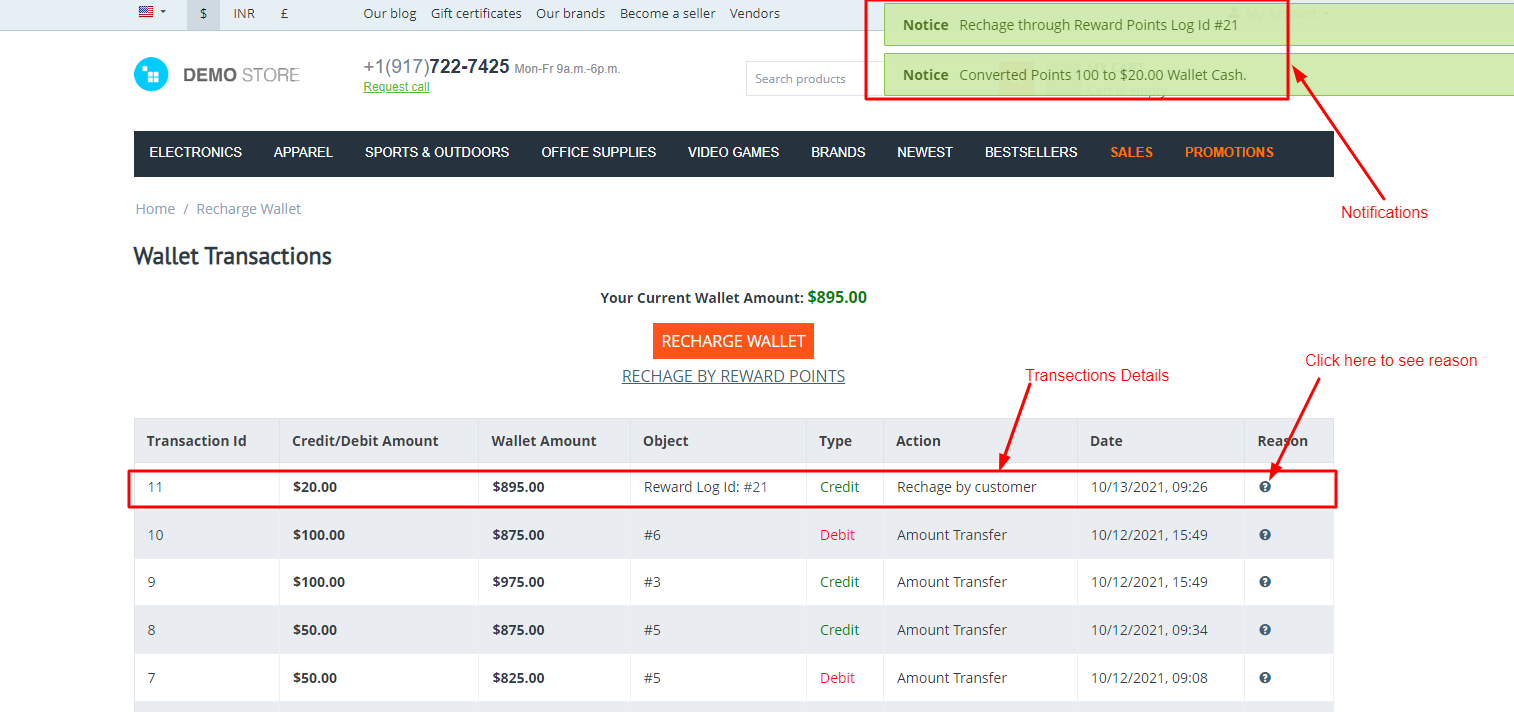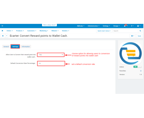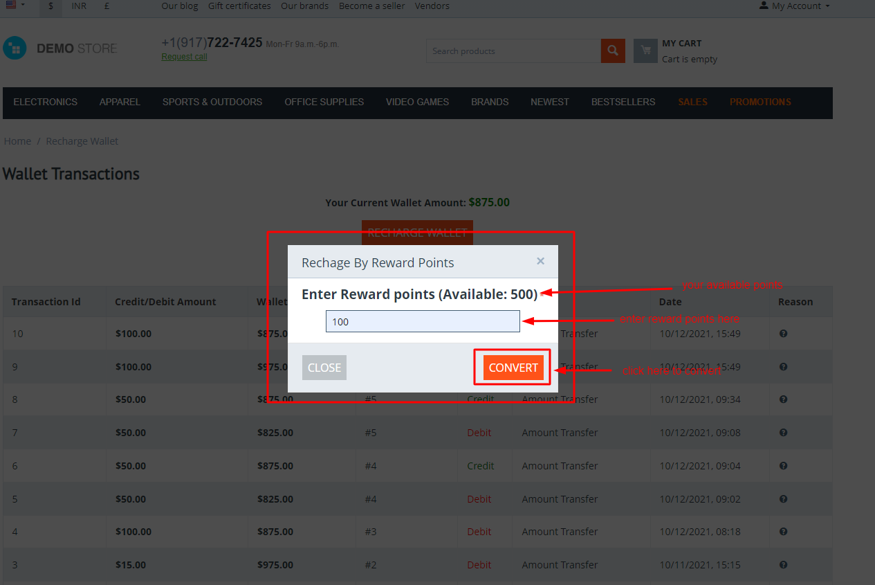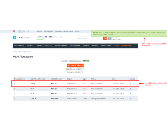 With this addon, we provide two additional free add-ons Transfer Wallet Cash to Account and Convert Reward points to Wallet Cash.