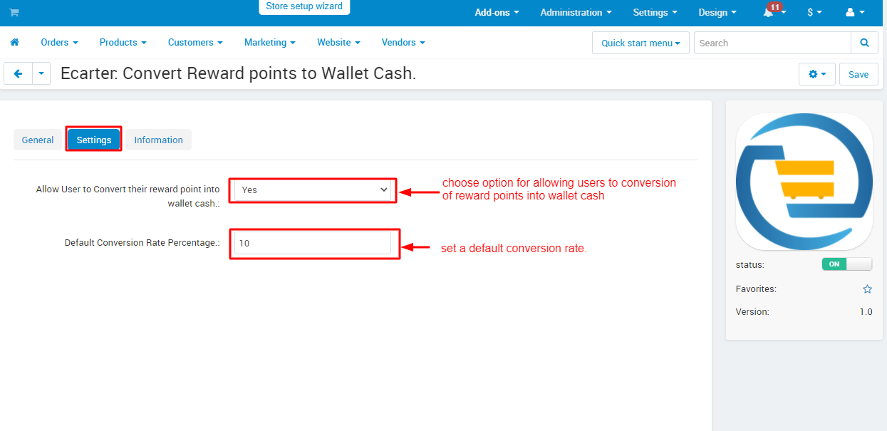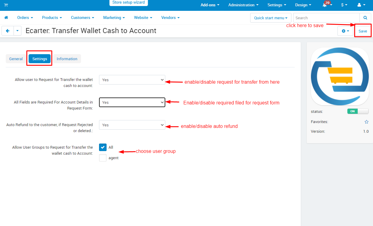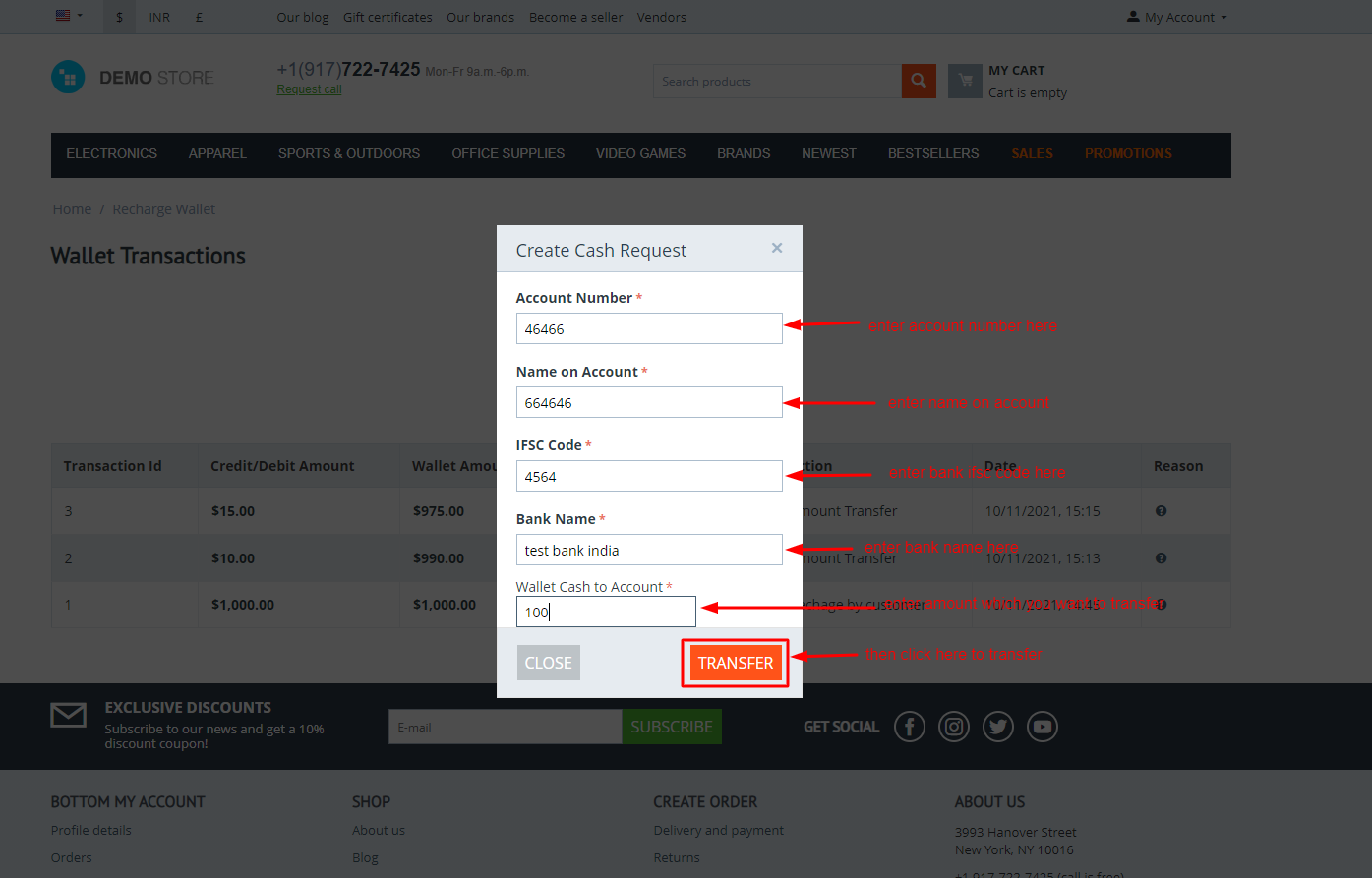 With this addon, we provide two additional free add-ons Transfer Wallet Cash to Account and Convert Reward points to Wallet Cash.