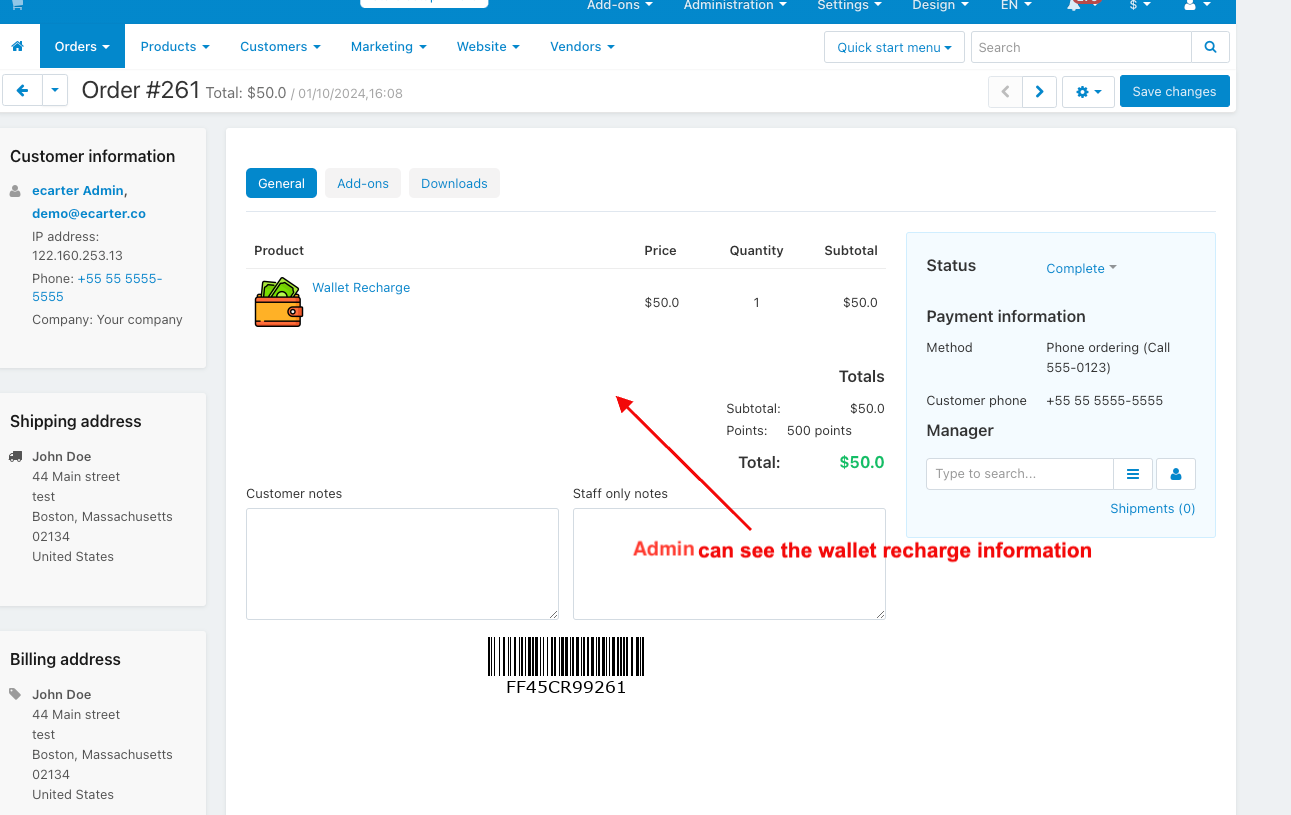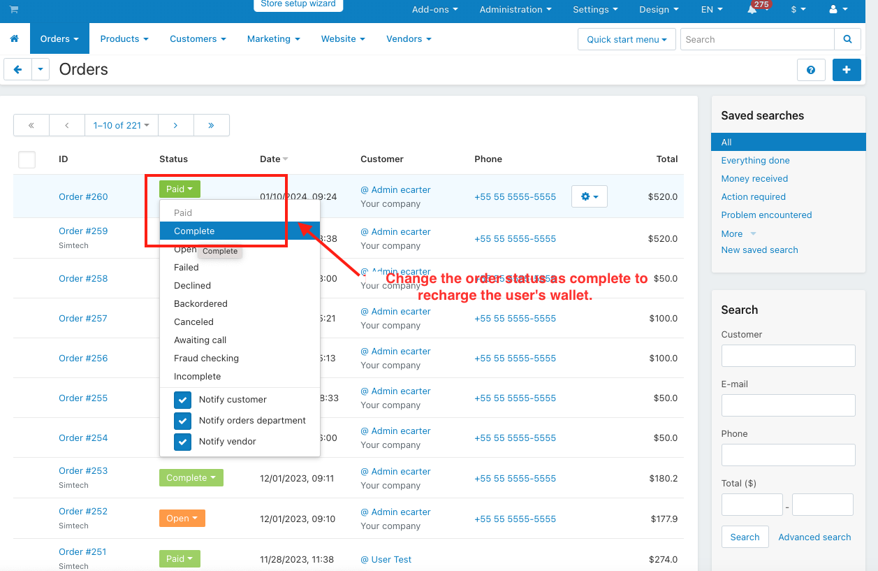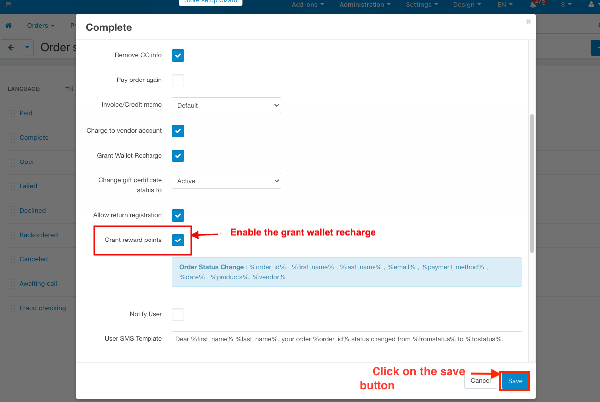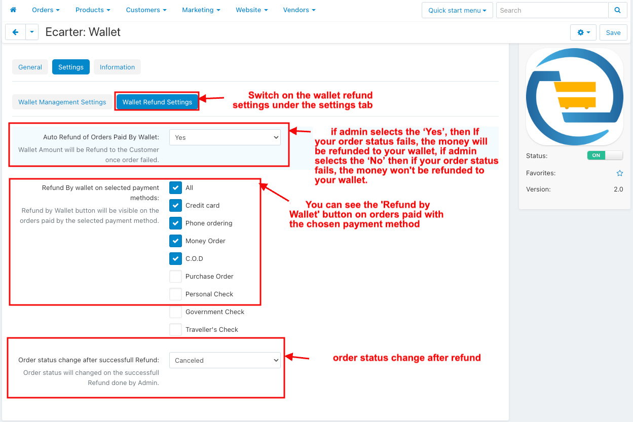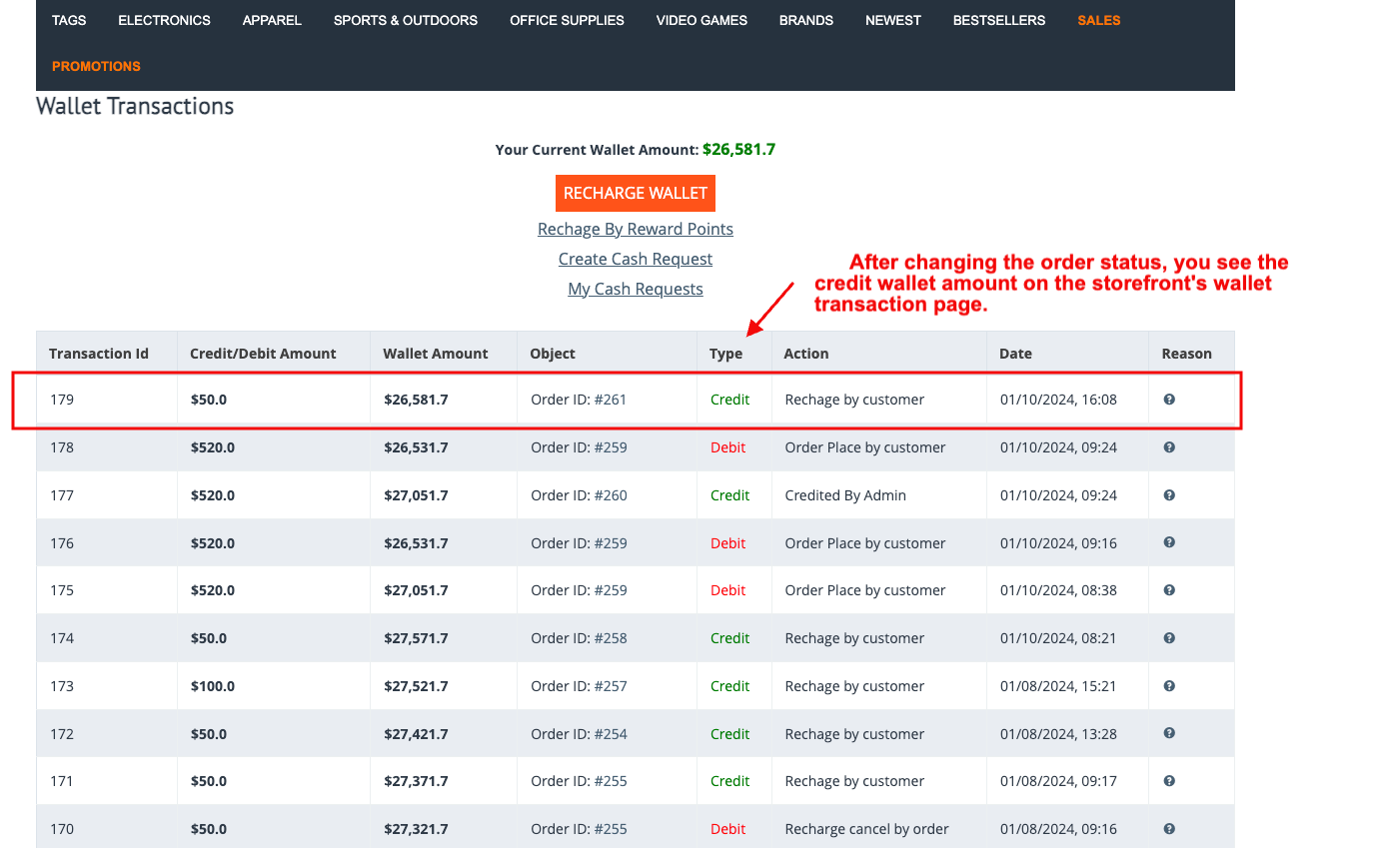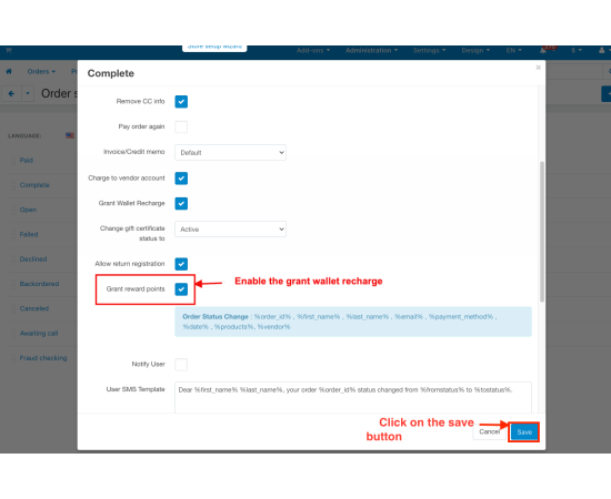 - Status-Based Wallet Recharge: Grant wallet recharge capability upon completing orders with a designated status.