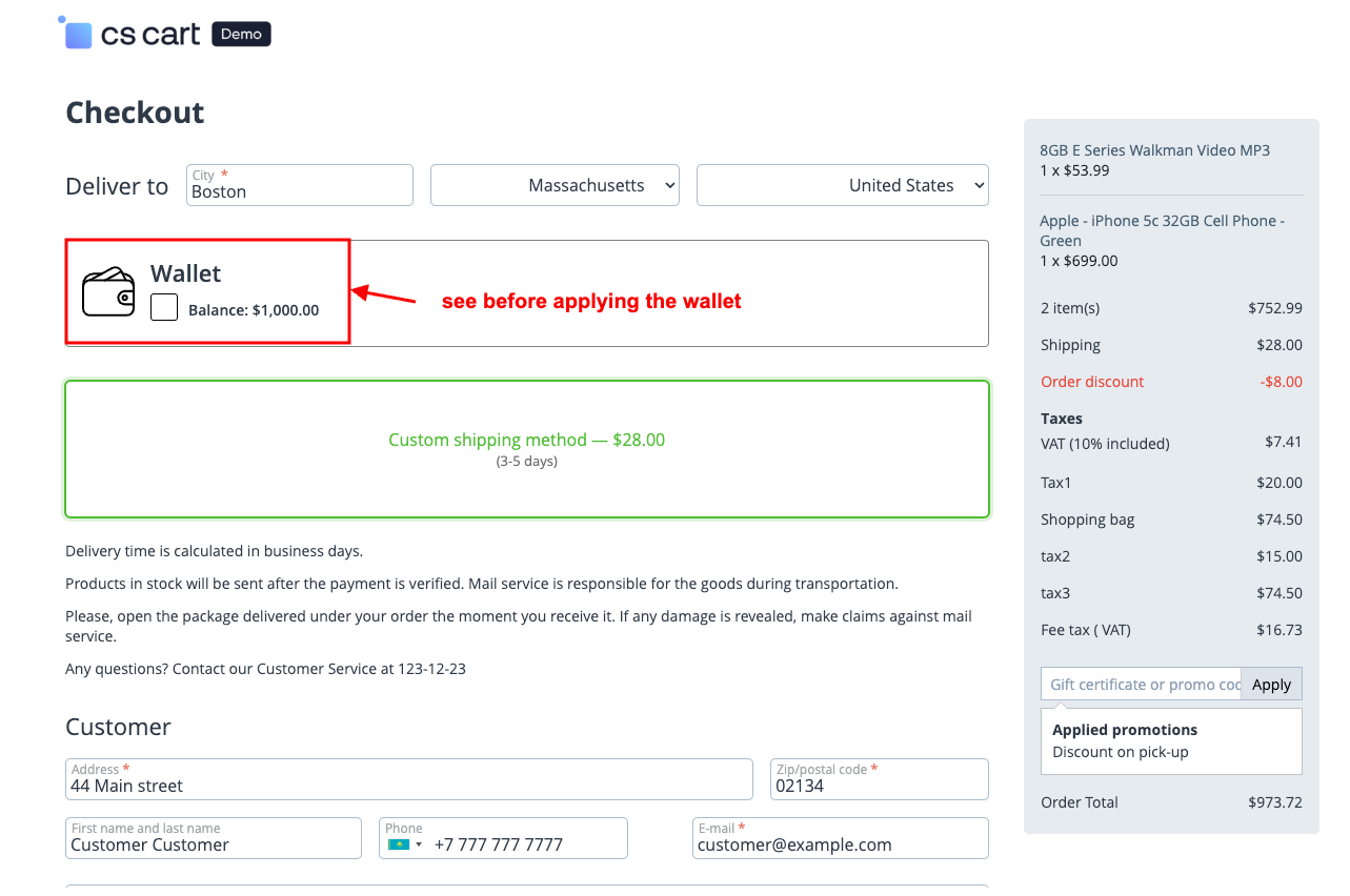 The CS-Cart Wallet System is a special add-on for your online shop. It lets customers add money to their virtual wallets and use it for purchases. If necessary, the store owner(admin) can also add money to a customer's wallet. This tool makes it easy for both the store admin and customers to track all the money movements in the wallet.