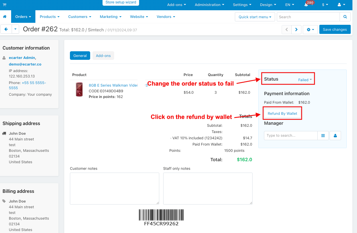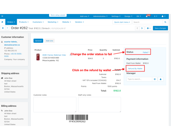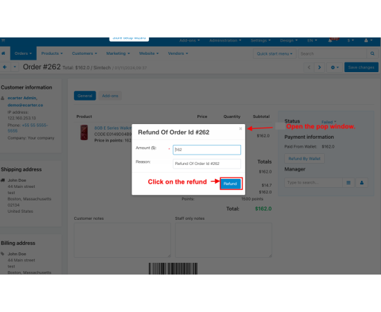 - Auto Refund Configuration: Admin can enable auto-refund to the wallet for failed order transactions.