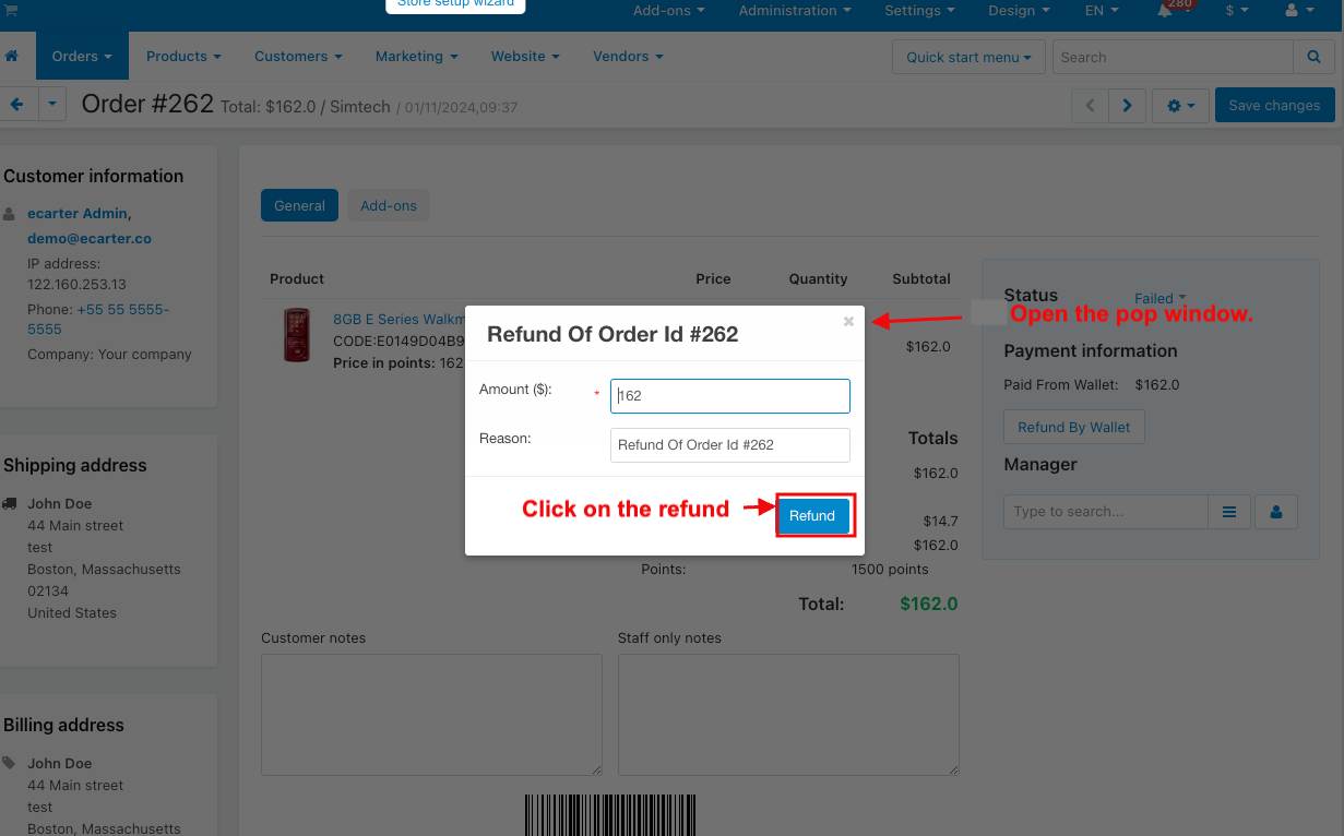 This add-on supports automatic refunds for failed orders, ensuring smooth transactions with the wallet on your website. With this user-friendly add-on, you can easily manage credit or debit money from your wallet and keep track of all wallet activities.