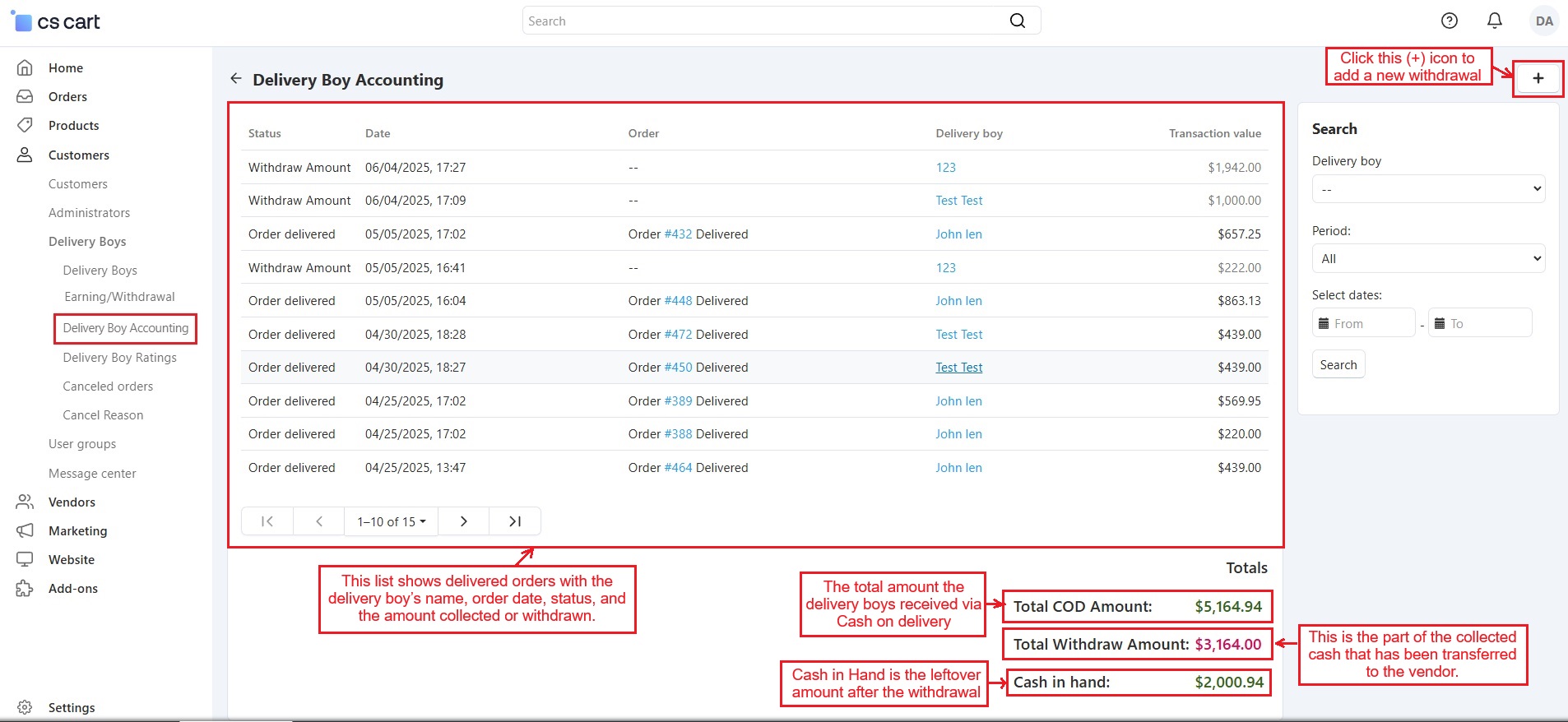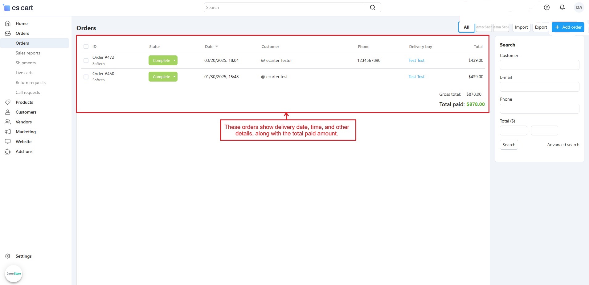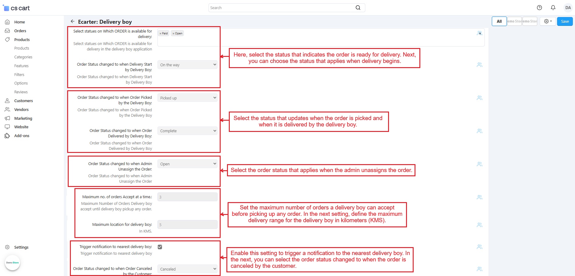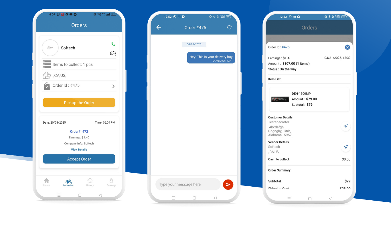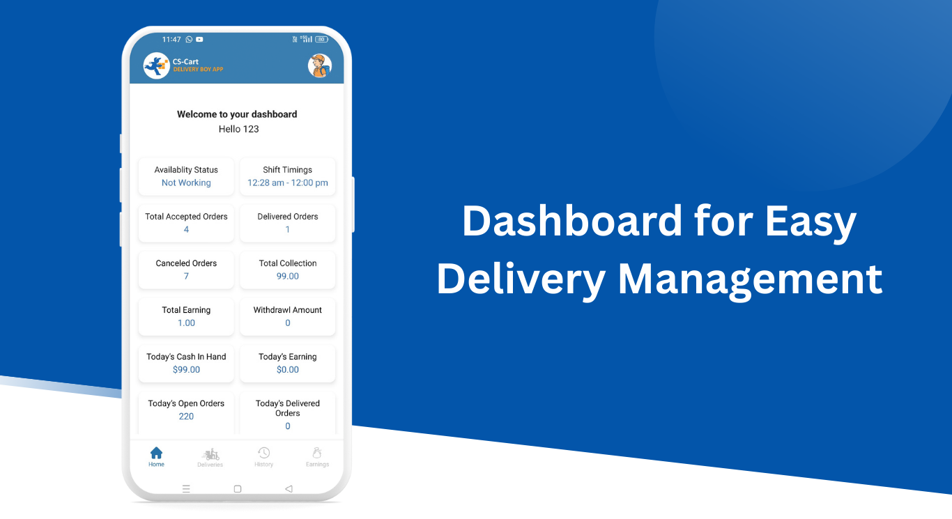 This application helps in delivering products from the CS-Cart store. Delivery boys can pick up the orders from the active orders list. After accepting orders, they need to deliver them before taking on more. This way, delivery boys have fewer orders to manage at once, making it easier to track and ensure timely delivery.
