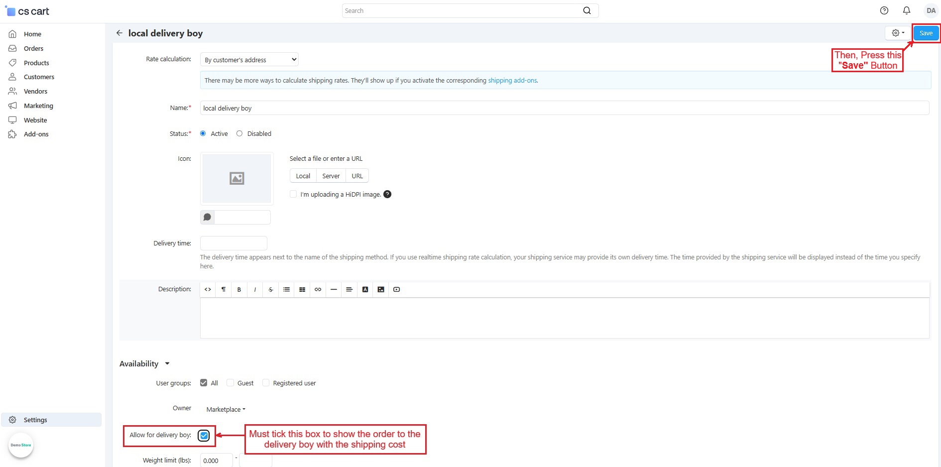 - Shipping Cost Visibility: Admins need to enable the option to show the shipping cost to the delivery boy.