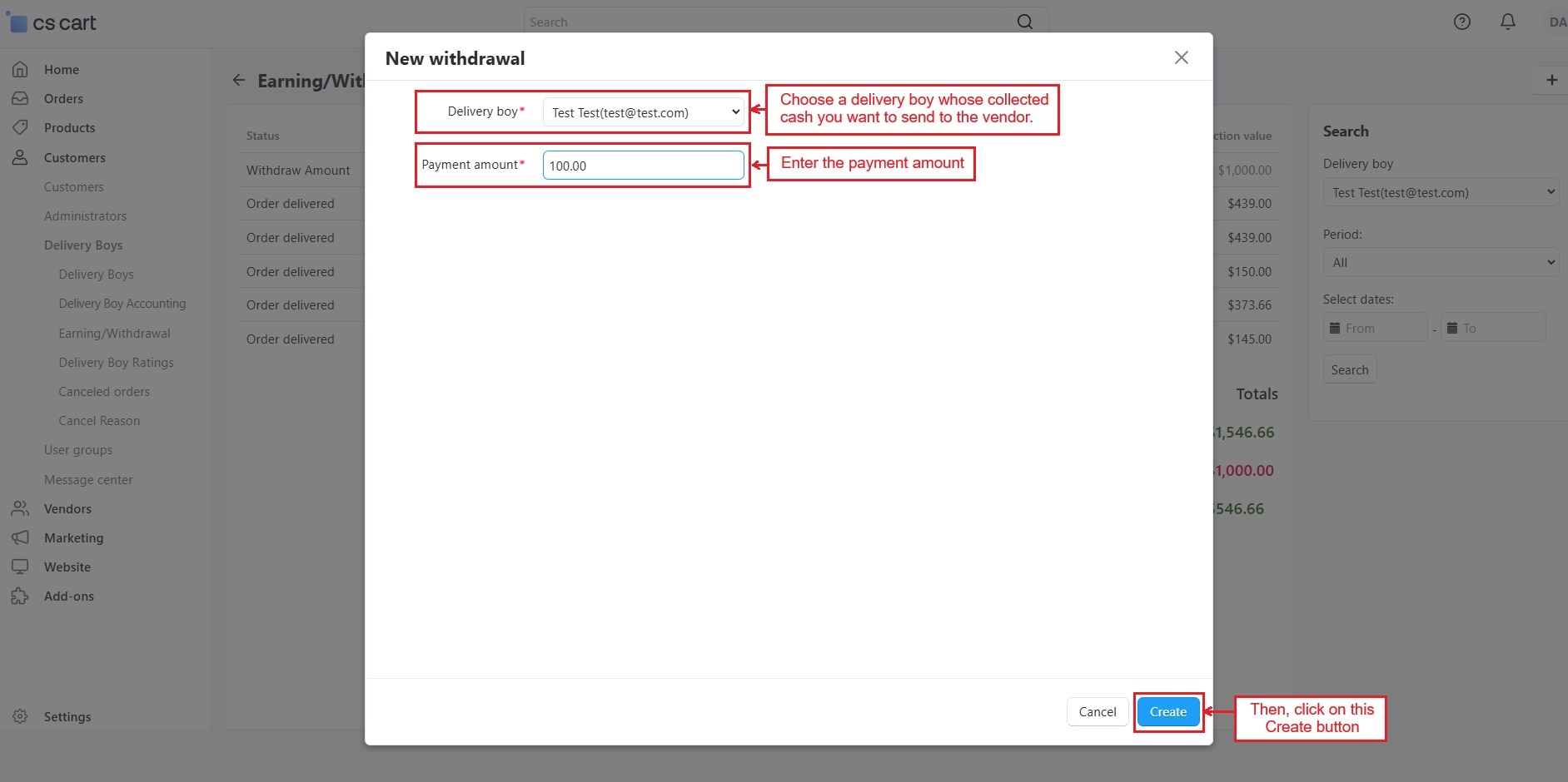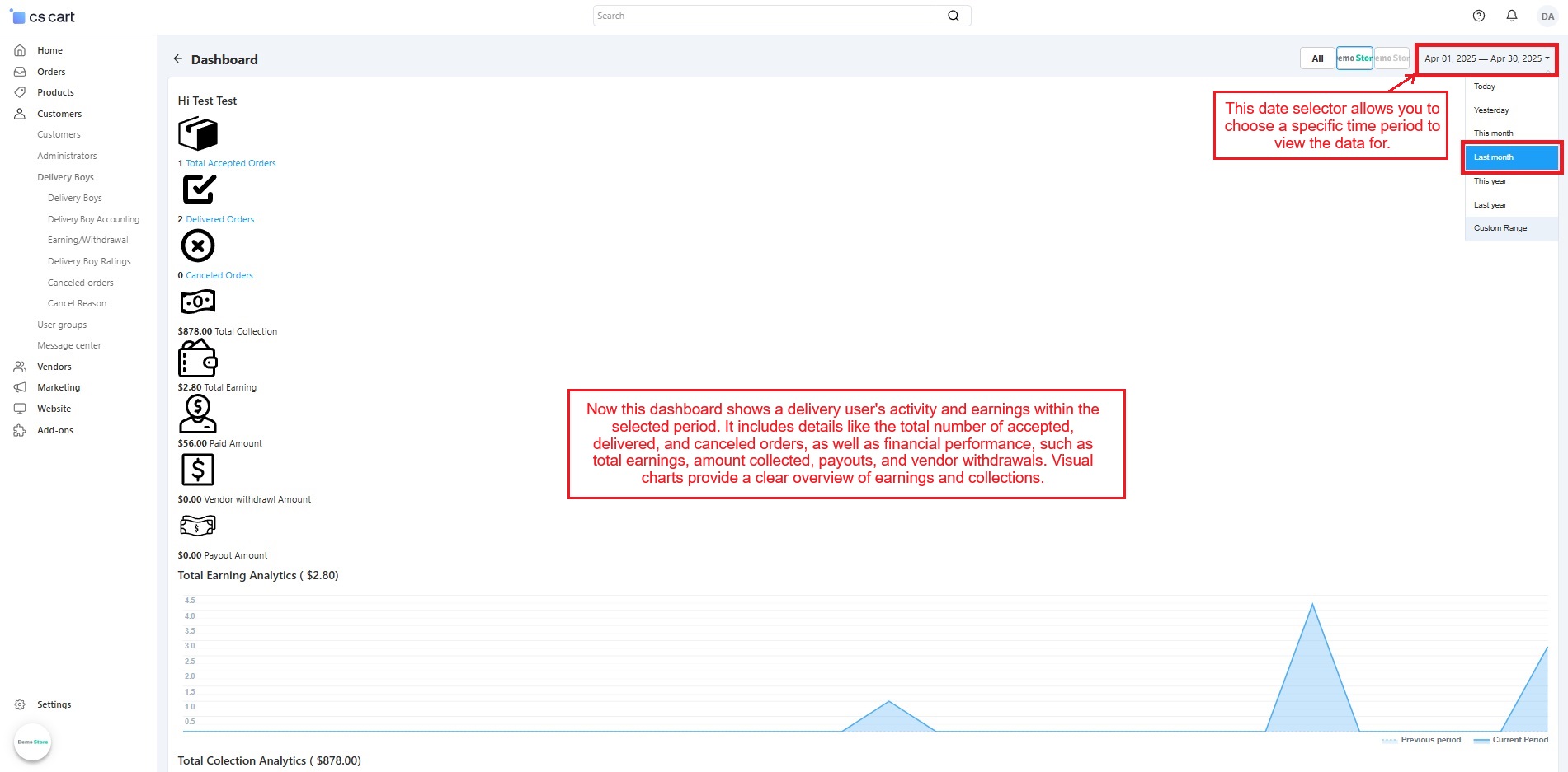 - Delivery Boy Dashboard: Admin can view an overview of the delivery boy's activities, including accepted, delivered, and canceled orders, as well as earnings, collections, and withdrawals.