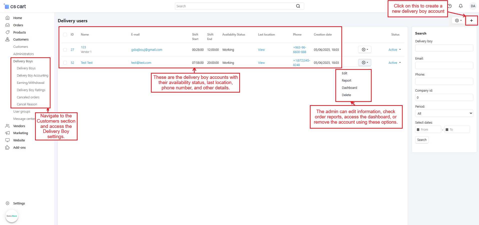 - Vendor Panel Access: Vendors can view and manage information related to their delivery boys from the "Delivery Boys" menu in the vendor panel.
