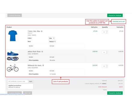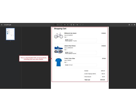 Download Cart to PDF add-on helps customers save their cart details as a PDF file in just one click. It converts all cart products, prices, and details into a well-structured PDF format.