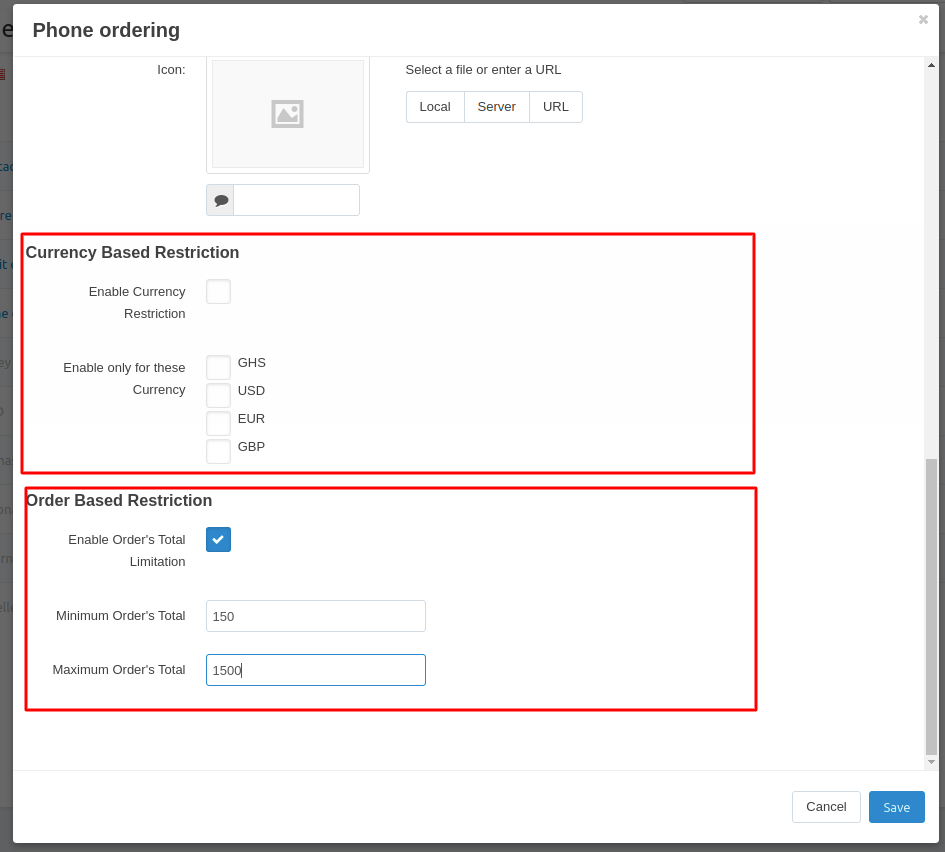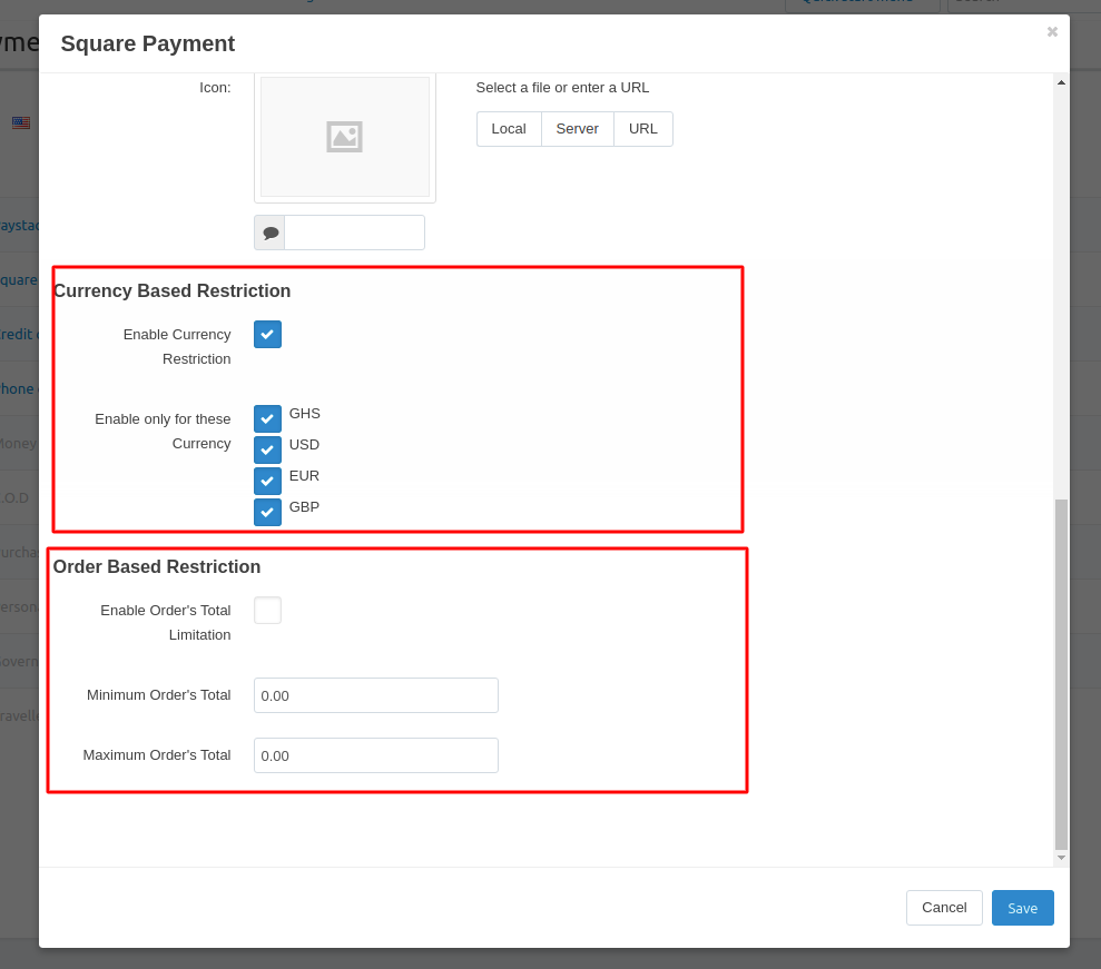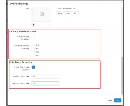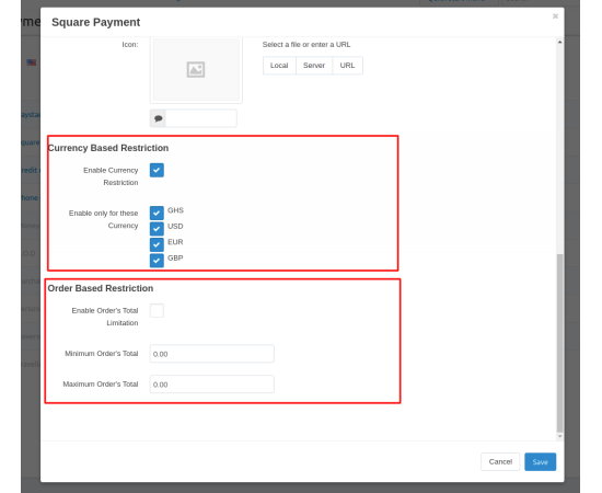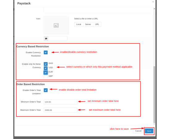 - Feature to allow admin to restrict payment method via currency-based restriction and order-based restriction.