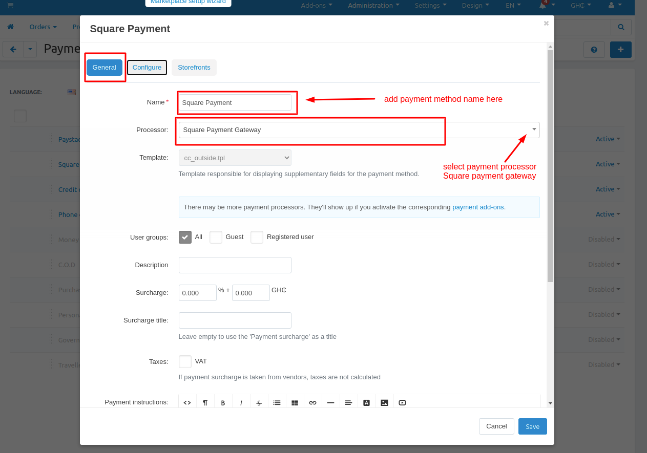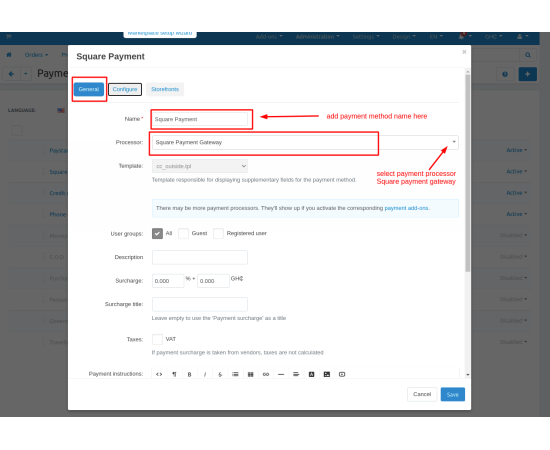 - A square payment gateway can easily integrate with CS-Cart. Set it up fast, and start processing online payments.