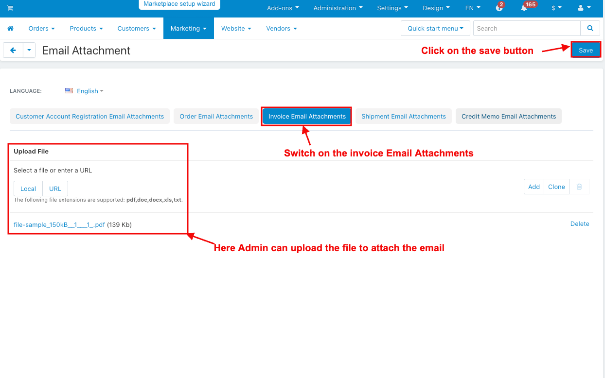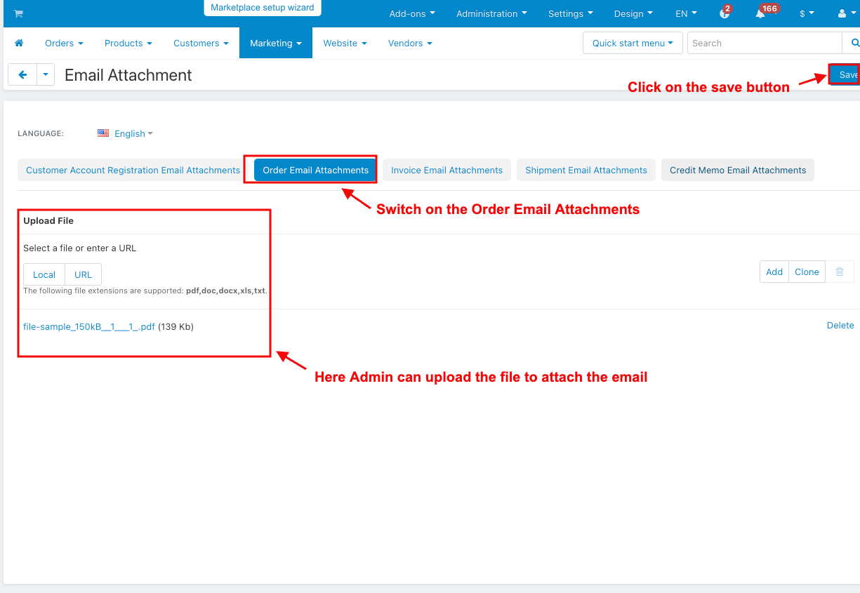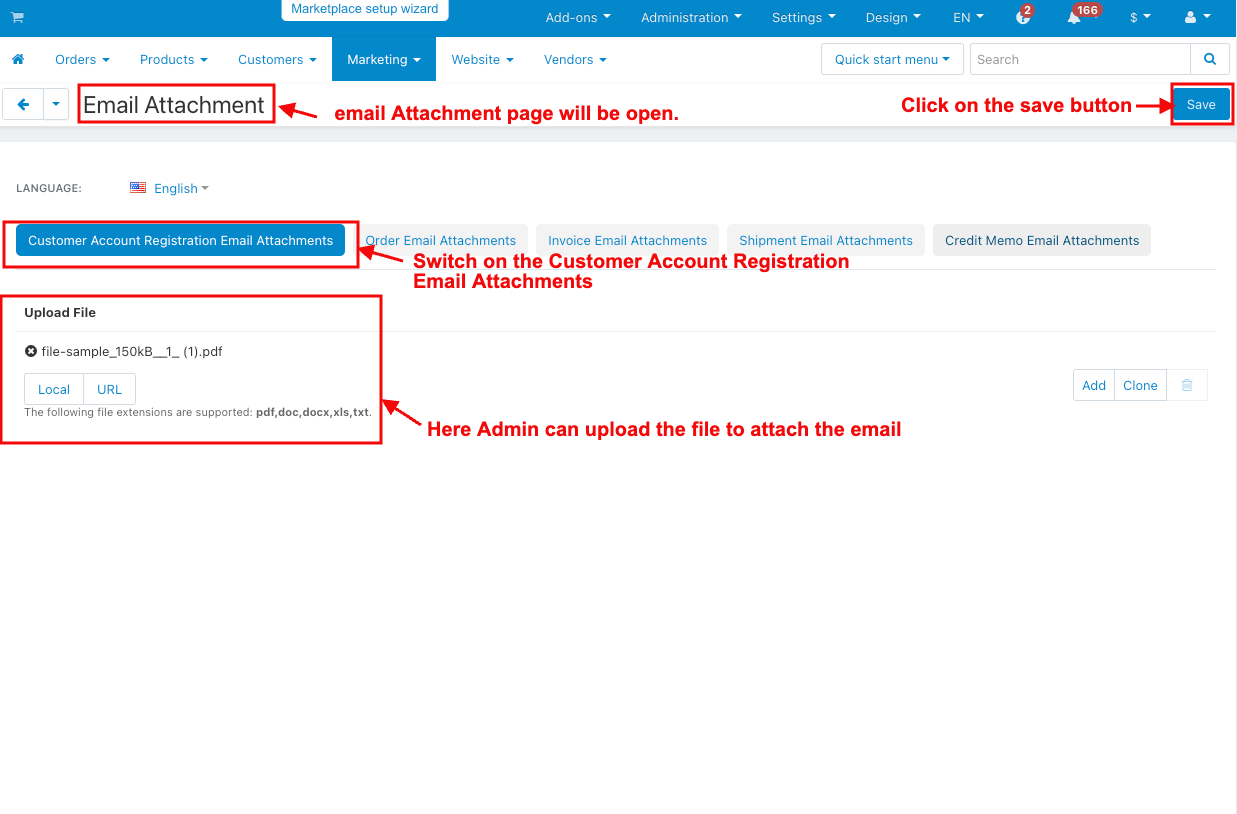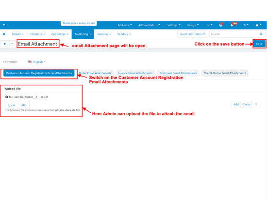 It also helps store admins manage communication more efficiently. Whether sending account registration emails or order updates, this addon keeps everything organized by attaching the right documents to each message, making the shopping experience smoother for both customers and admins.