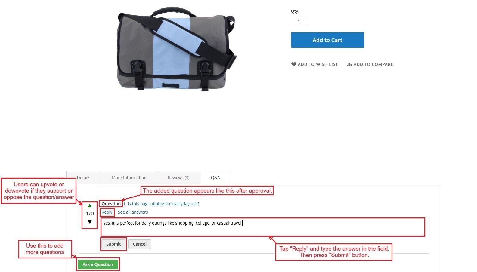 Admin Approval for Questions & Answers: All questions and replies require admin approval before appearing on the product page.