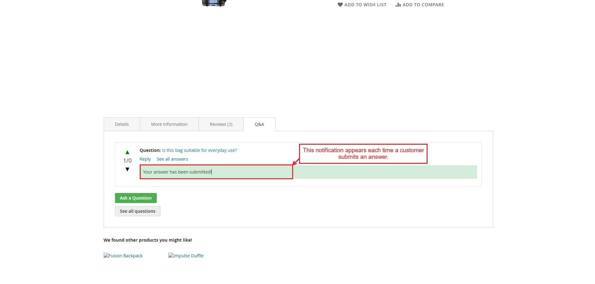 Now, the admin needs to approve the question to show it on the product page.