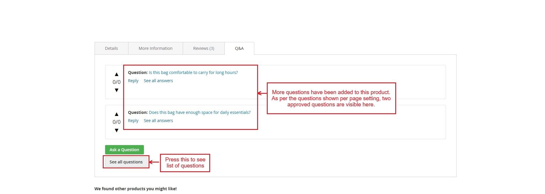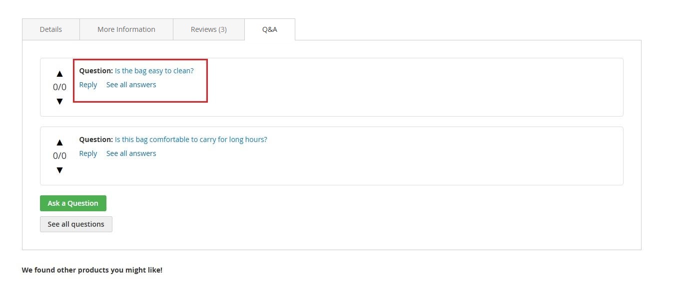 More questions have been added to this product. Based on the questions-per-page setting, only two approved questions are shown on the product page.