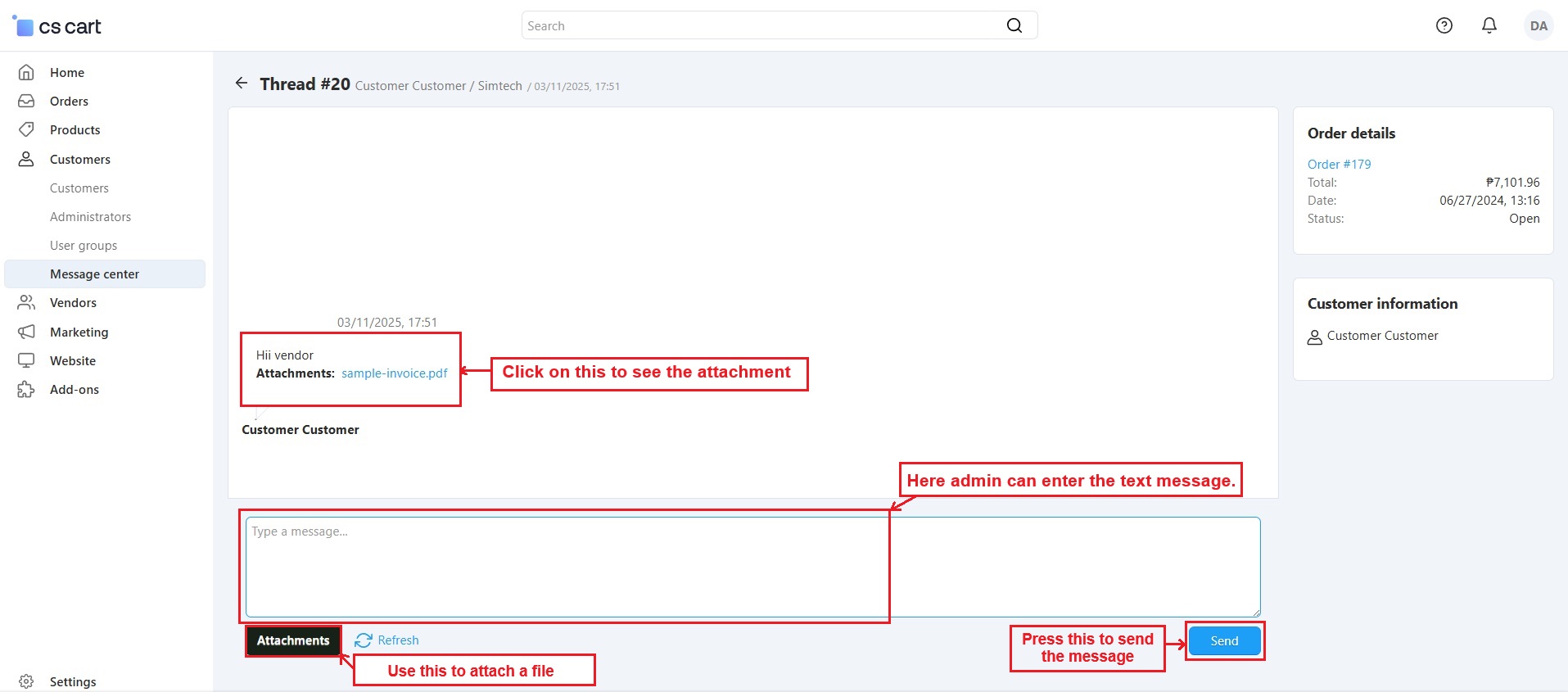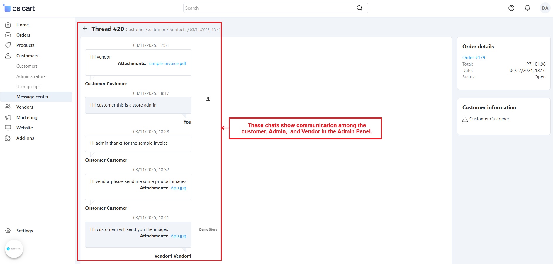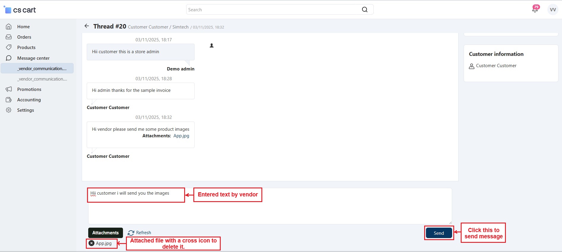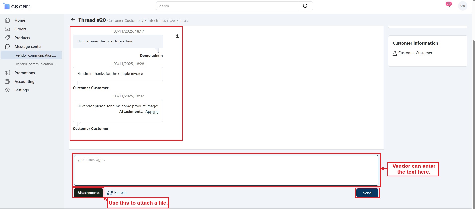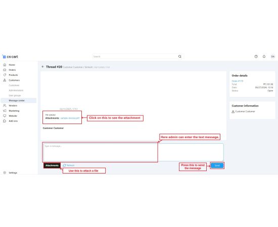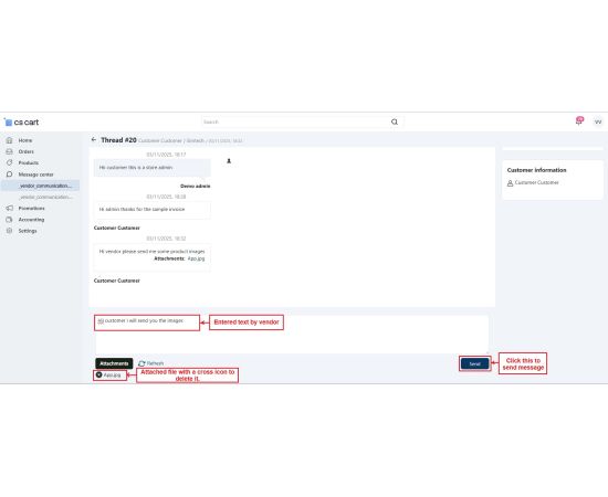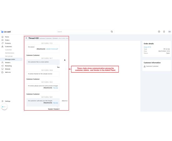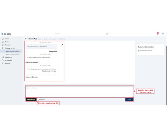 The CS-Cart Message Center With Attachment Addon improves communication between customers, vendors, and admins by allowing them to share files directly through the message center. Users can attach images, documents, invoices, or any other important files in their messages, making communication faster and more organized.