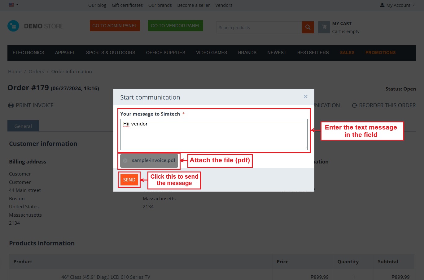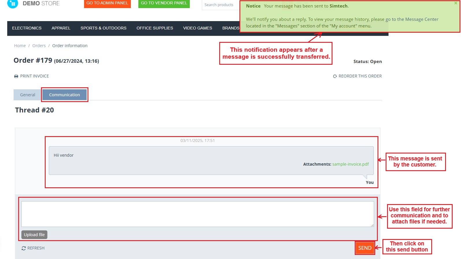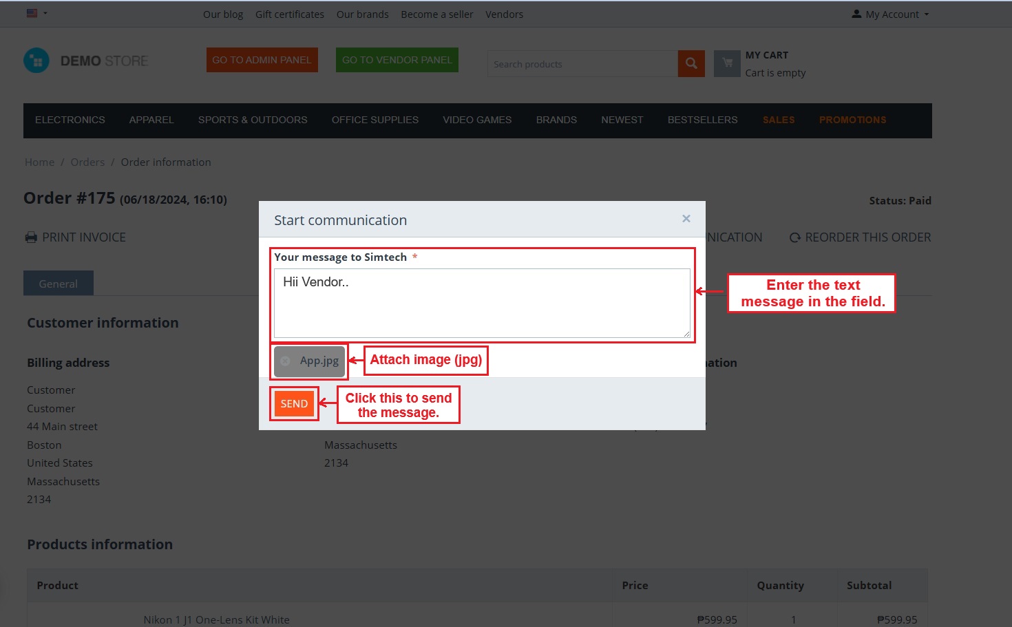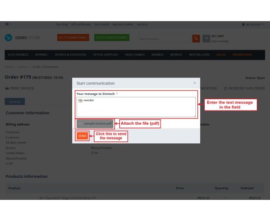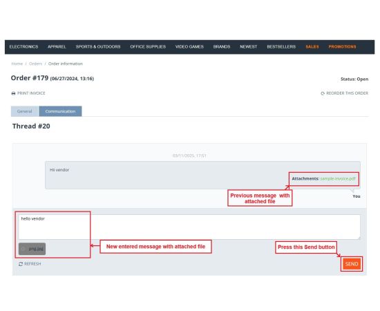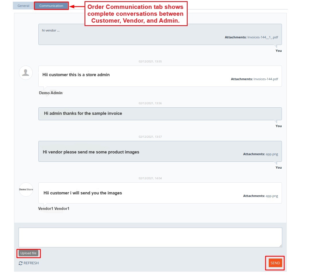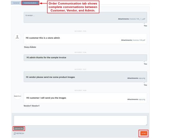 - Feature to allow customers, vendors, and admin to include any attachment in the message.