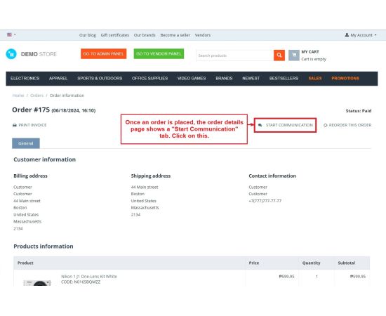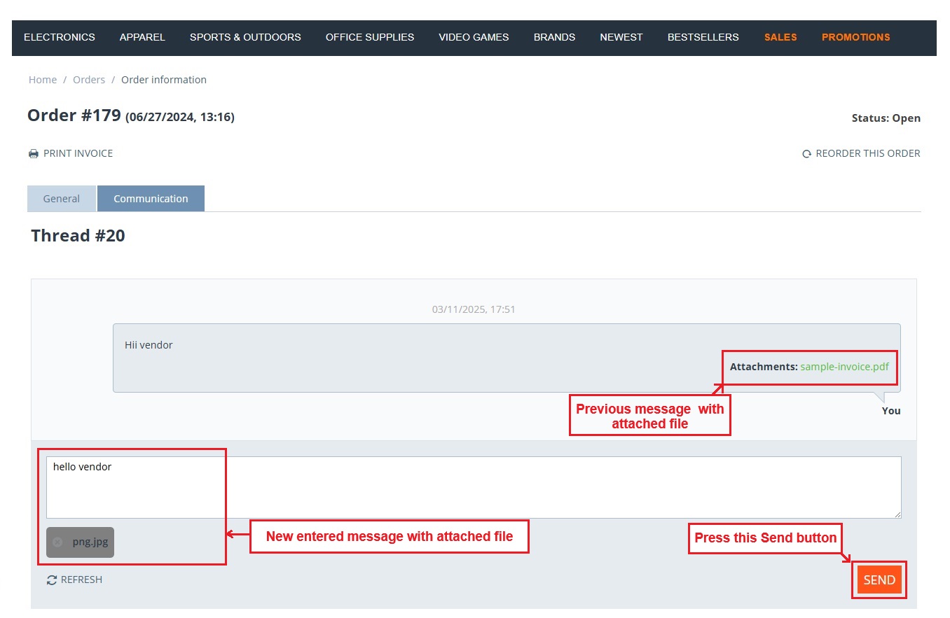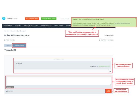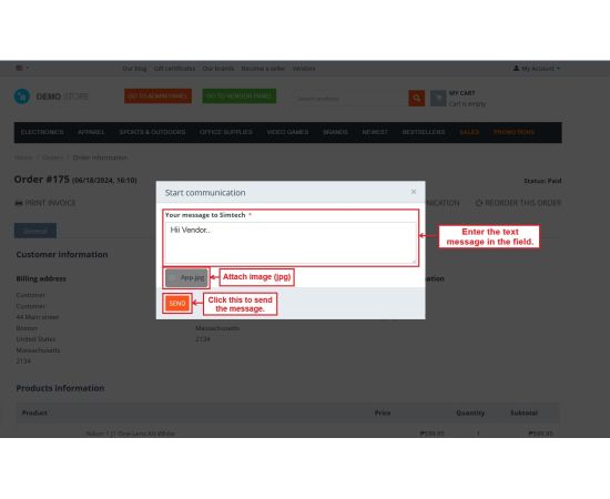 With this addon, all important details can be exchanged in one place, reducing confusion and improving customer support. It helps vendors and customers share product-related details, order proofs, or issue clarifications easily.