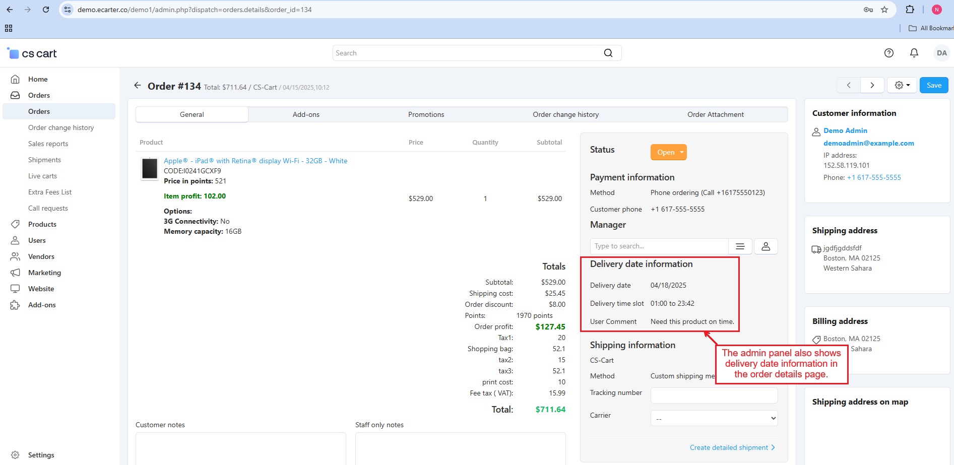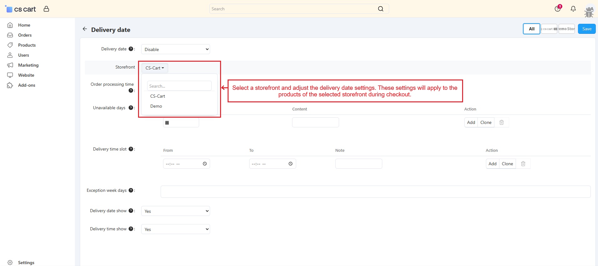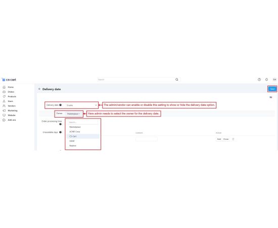 The CS-Cart Order Delivery Date and Time add-on empowers vendors to offer customers the flexibility to select their preferred delivery date and time during checkout. This feature enhances customer satisfaction by providing a personalized shopping experience. Vendors can manage delivery schedules, set unavailable dates, and define processing times directly from the vendor panel.