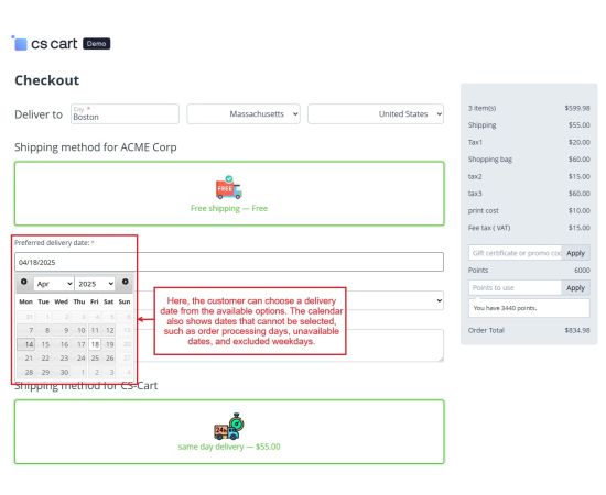- Selection Options: Customers can pick a specific date for their delivery at checkout.