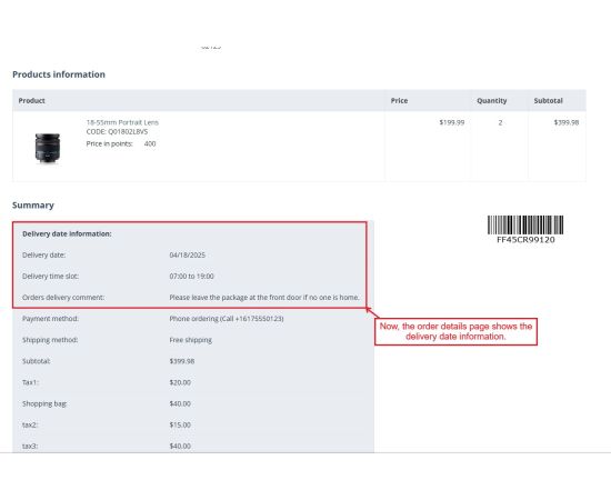- Visible Dates: Delivery dates are displayed on the checkout page and order detail page.