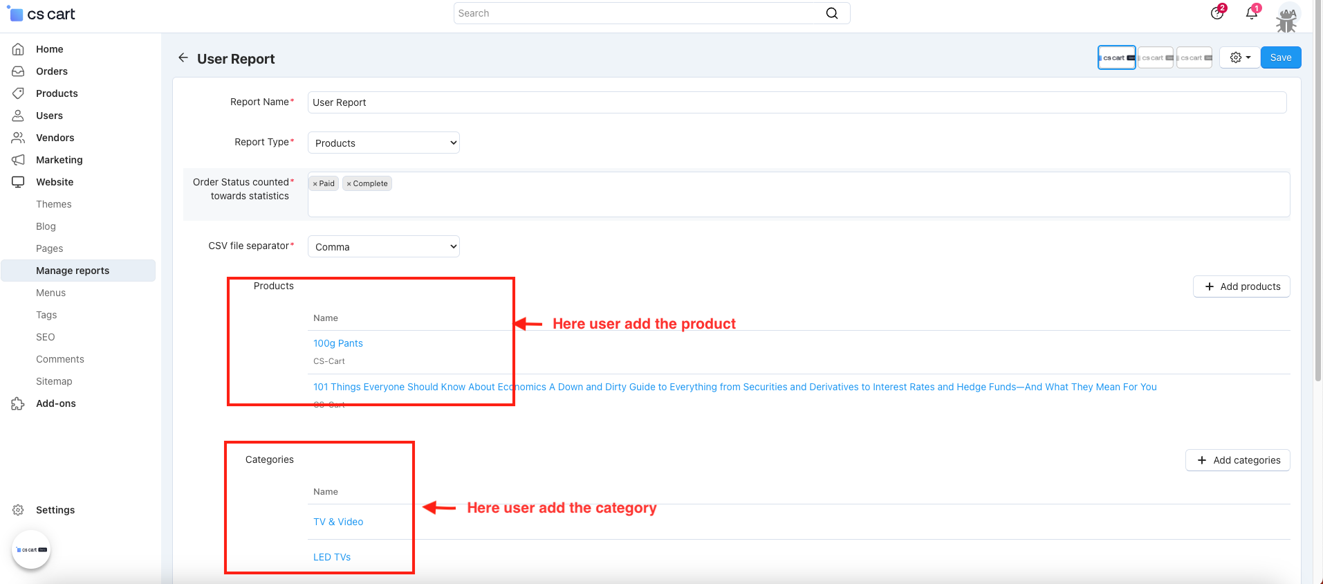 CS-Cart Sales Report & Manage Export Addon empowers store administrators to efficiently track and export sales data. With this addon, users can generate detailed sales reports based on products, categories, or individual users, and export them in CSV format for comprehensive analysis.