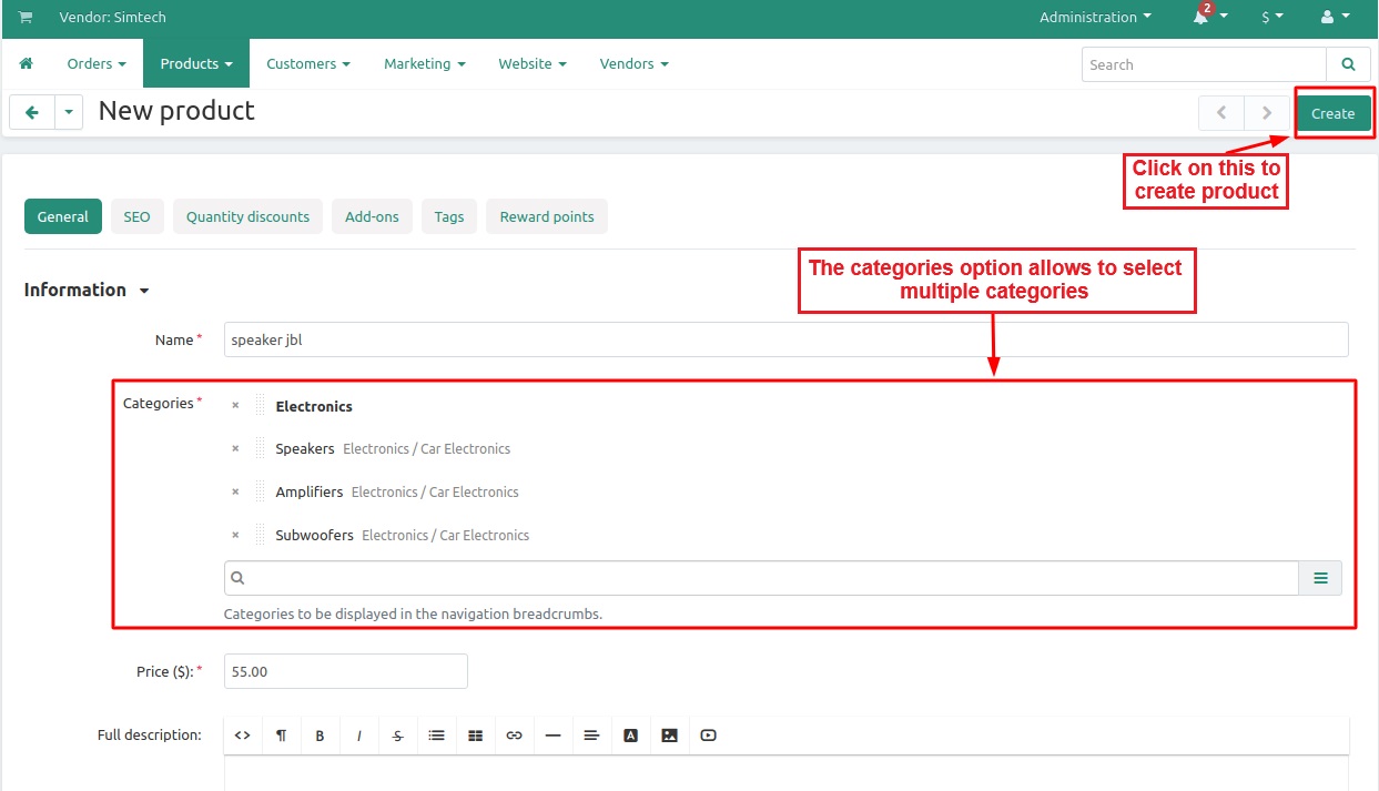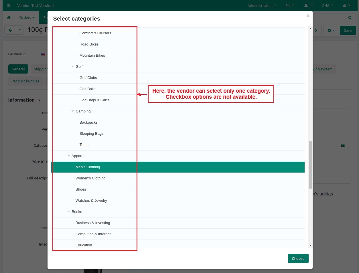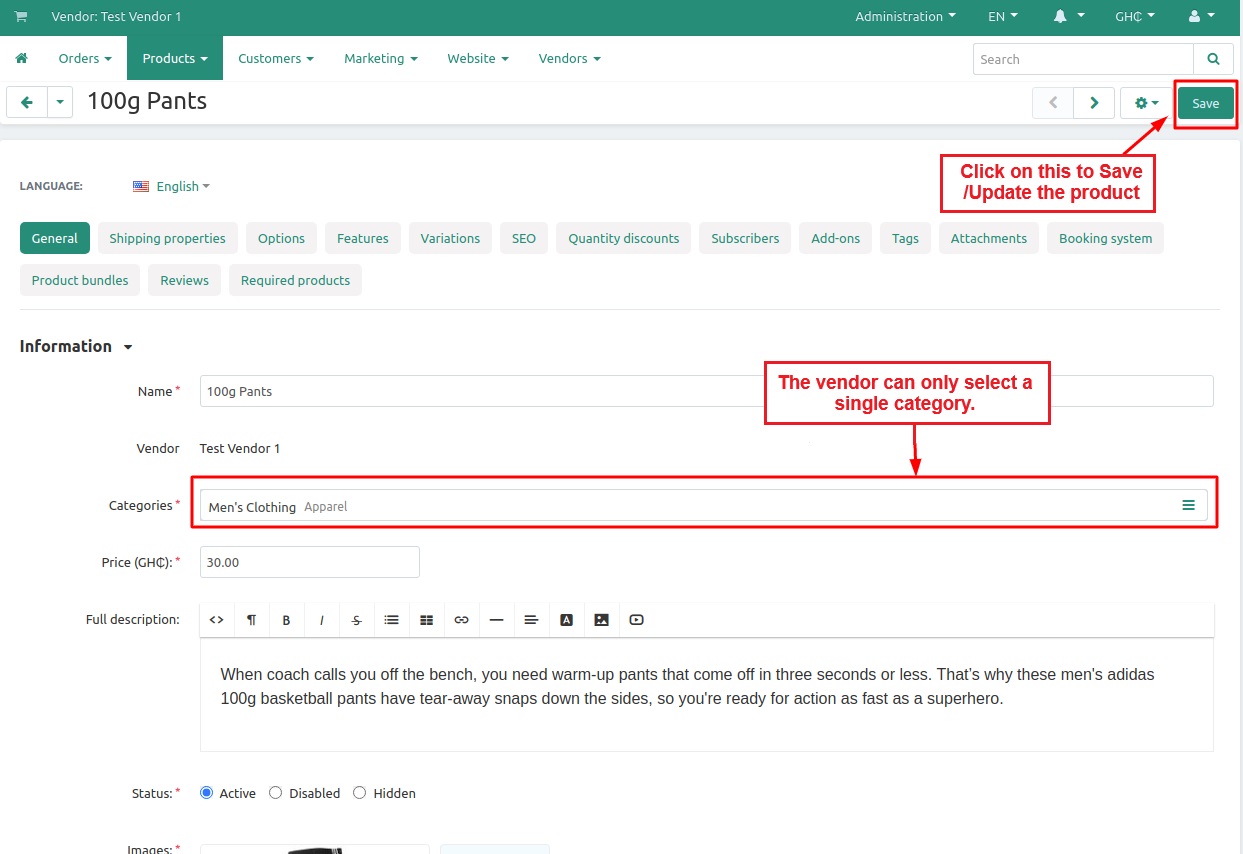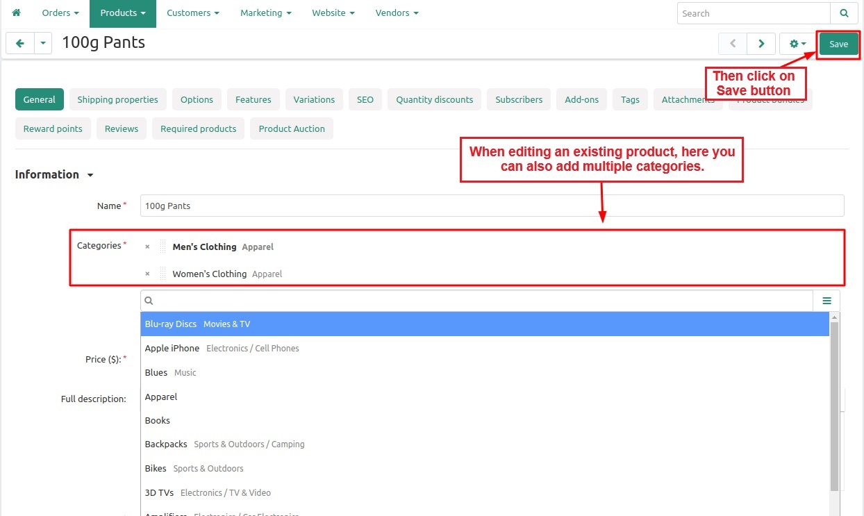 The addon allows Admin/Vendor to select only a single category for any product at the CS-Cart store. They both can select only a single category during any product creation or update.