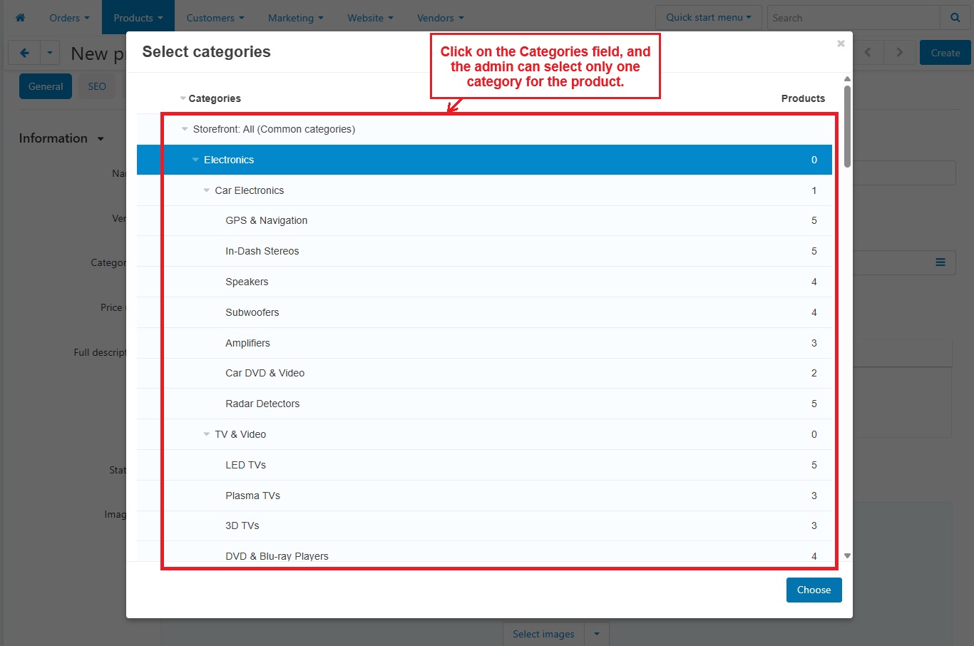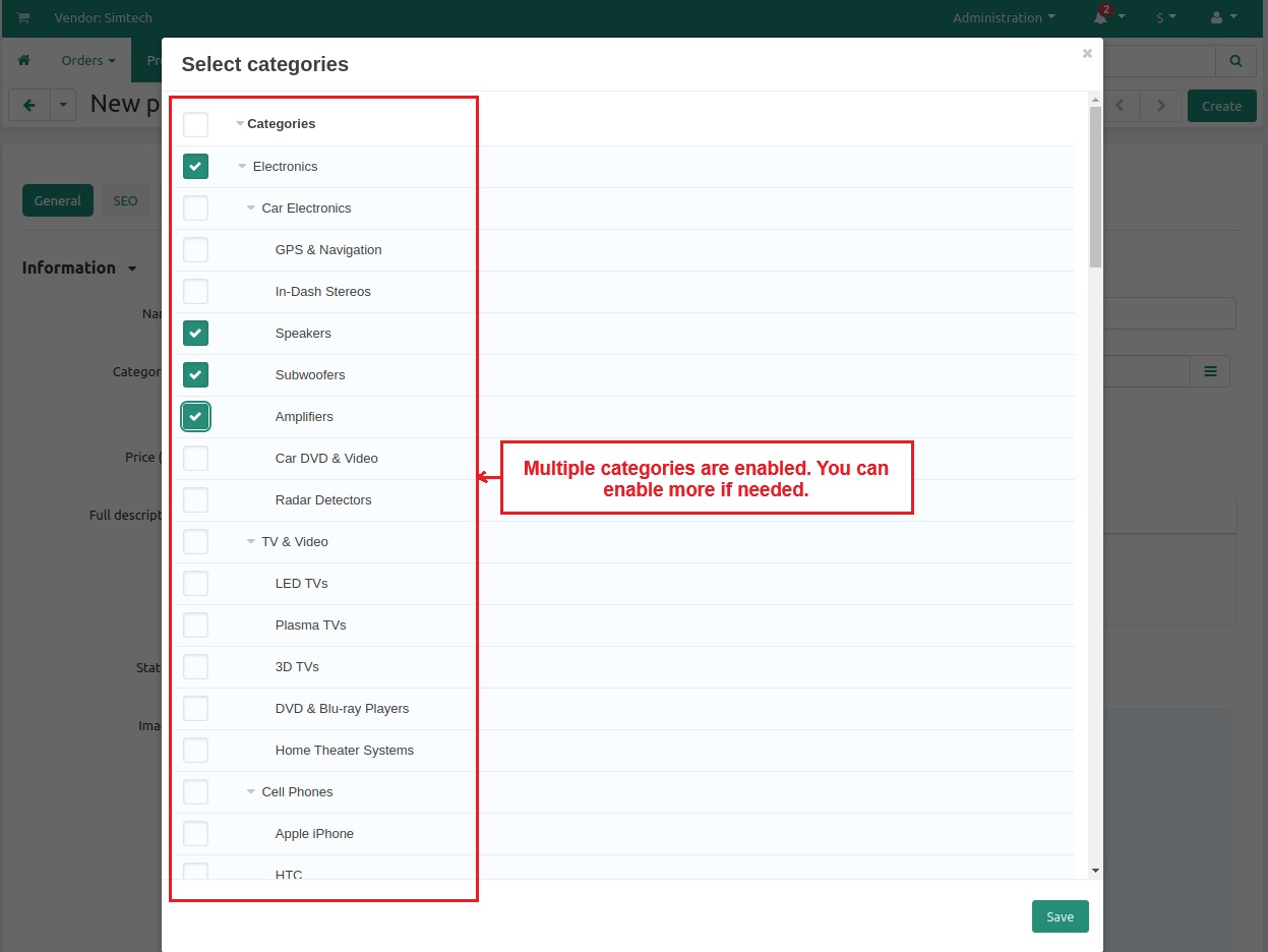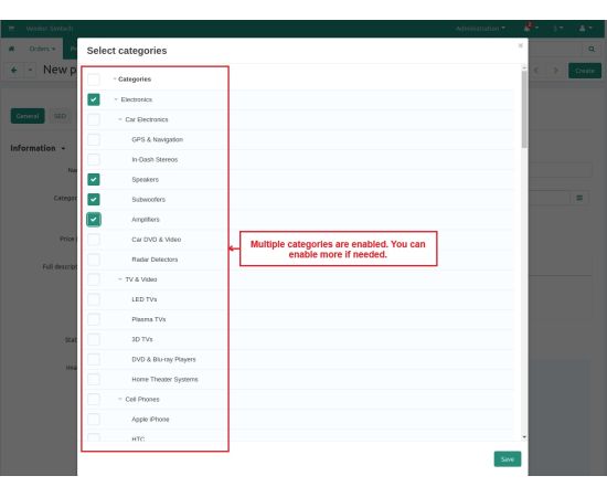 - Restriction when creating and updating product: Allows selecting only one category when creating or updating a product.