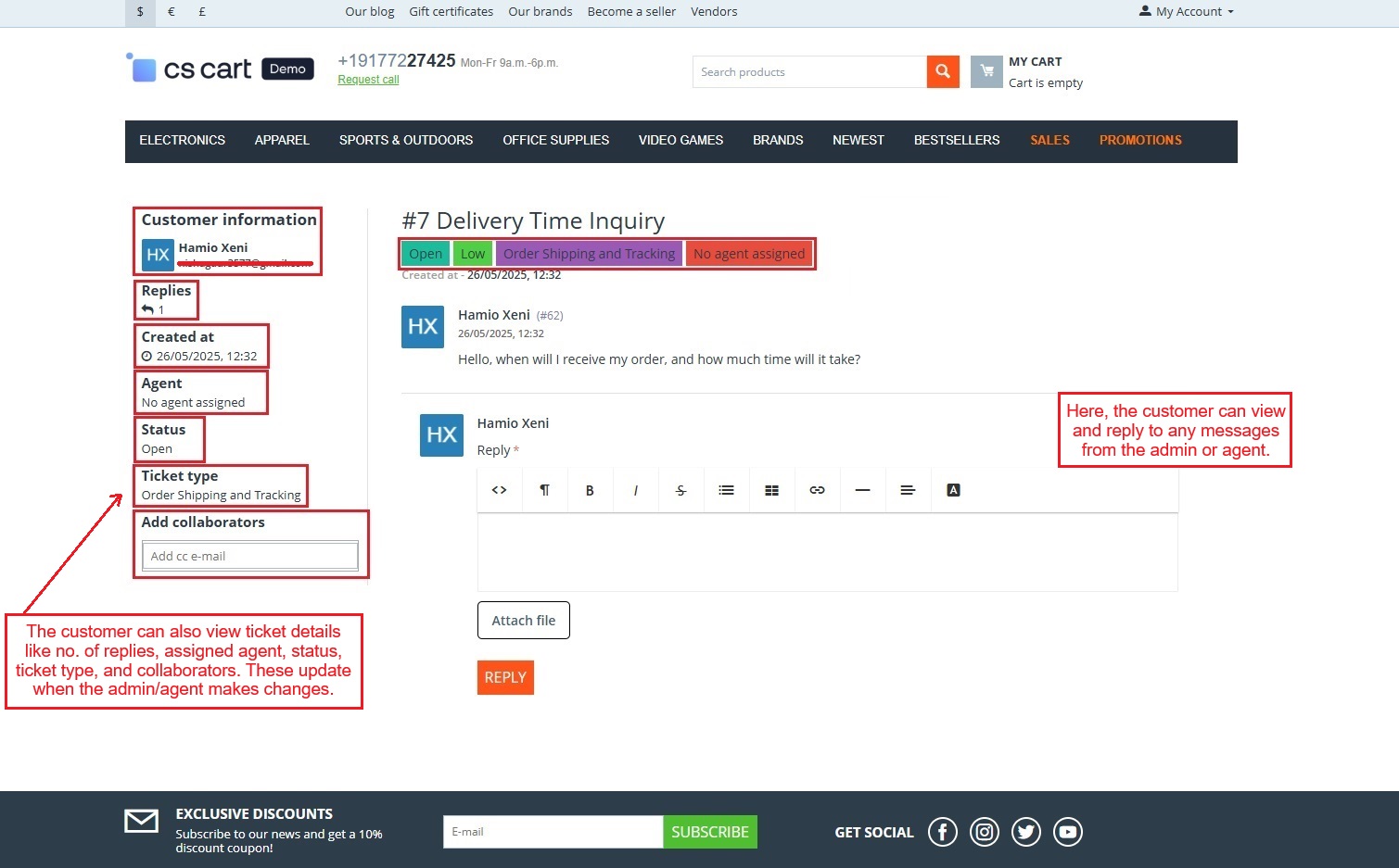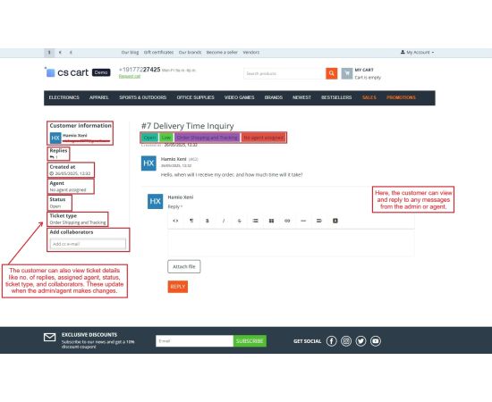 Improve your store’s customer service with a built-in ticketing system. Let users raise requests and admins respond all within CS-Cart.