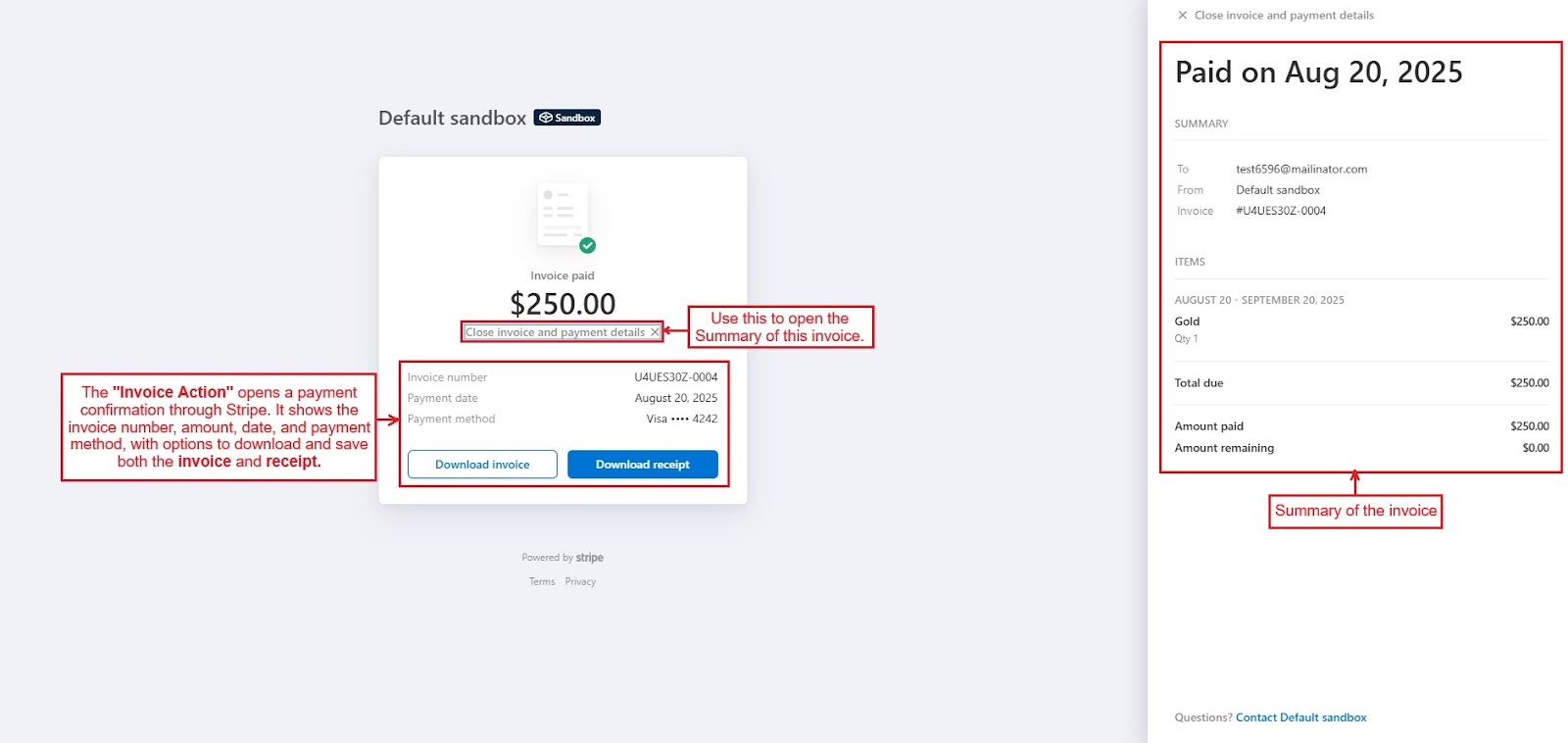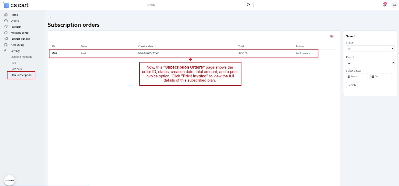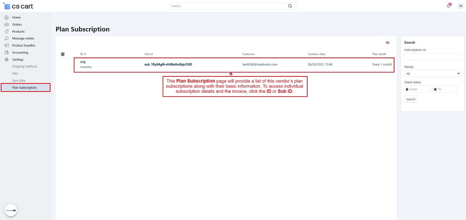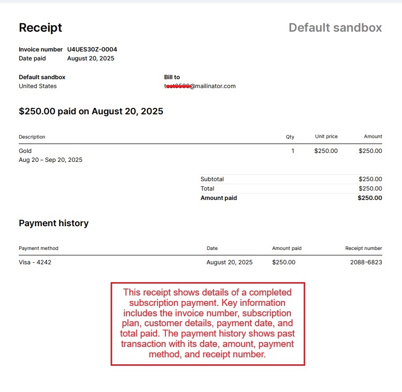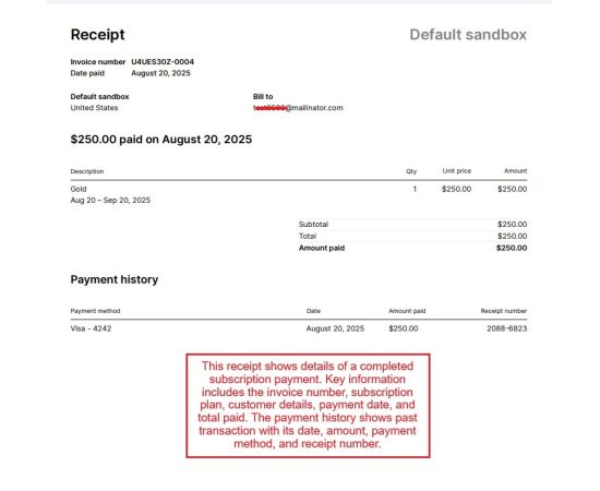 - Invoice & Receipt Handling: The admin and vendors can view, print, and download invoices and receipts for each subscription, with full payment details.