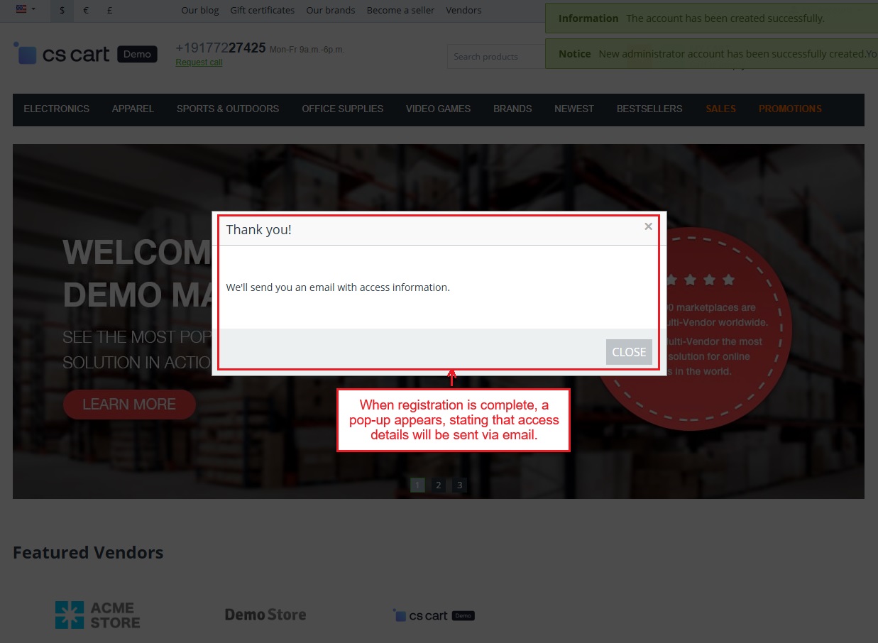 - Vendor Registration & Access: Vendors register from the storefront, select a plan, and receive credentials to access the vendor panel.